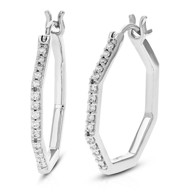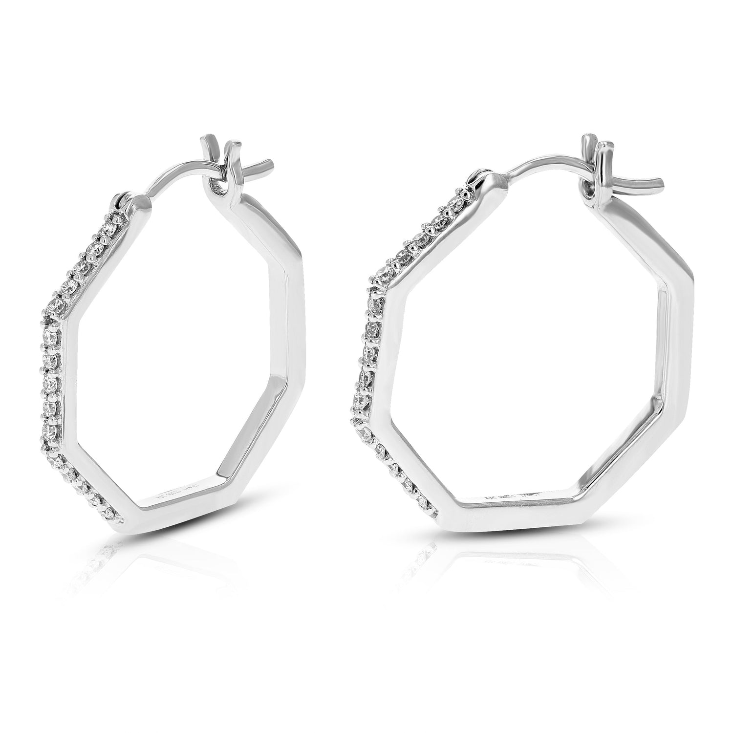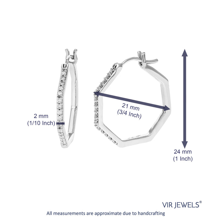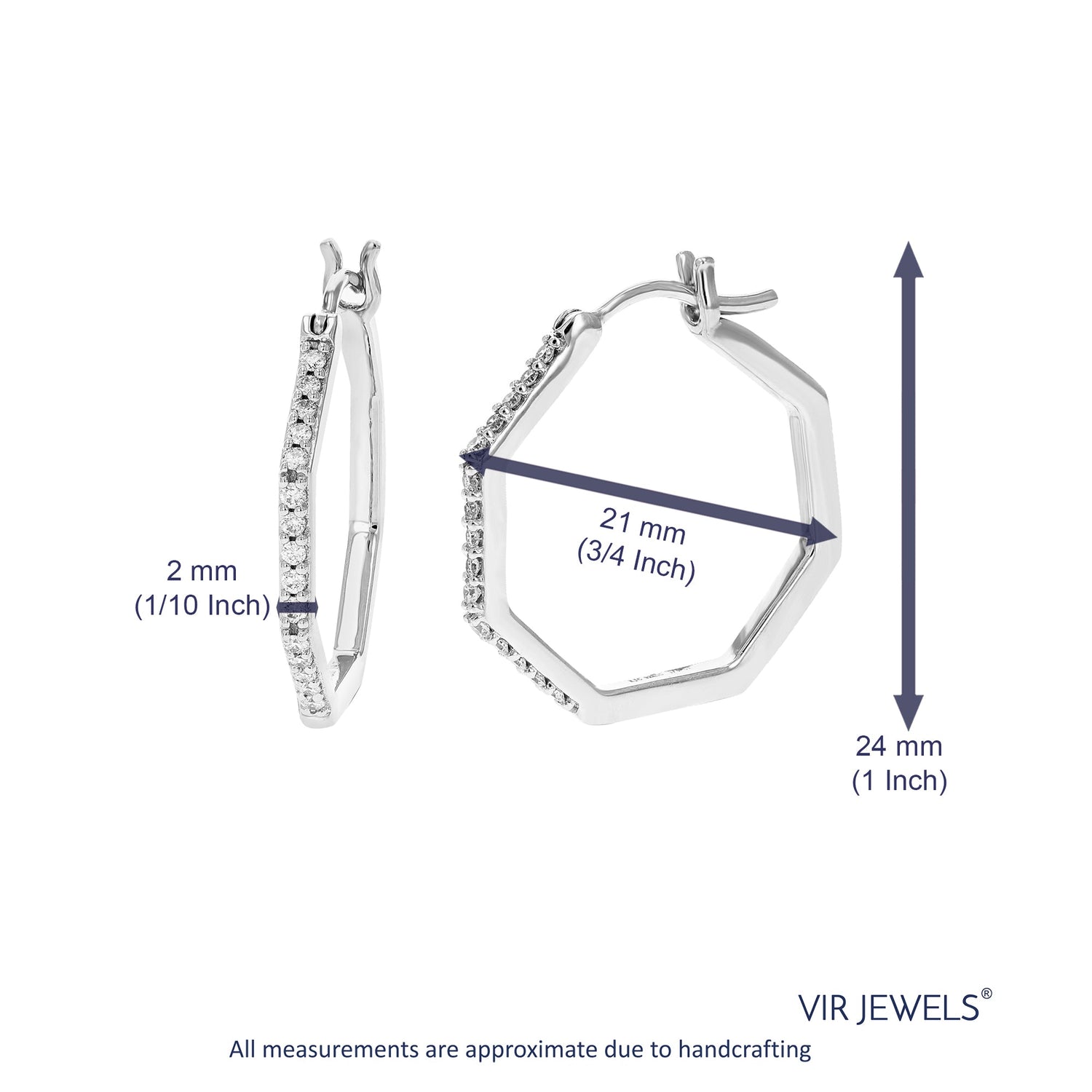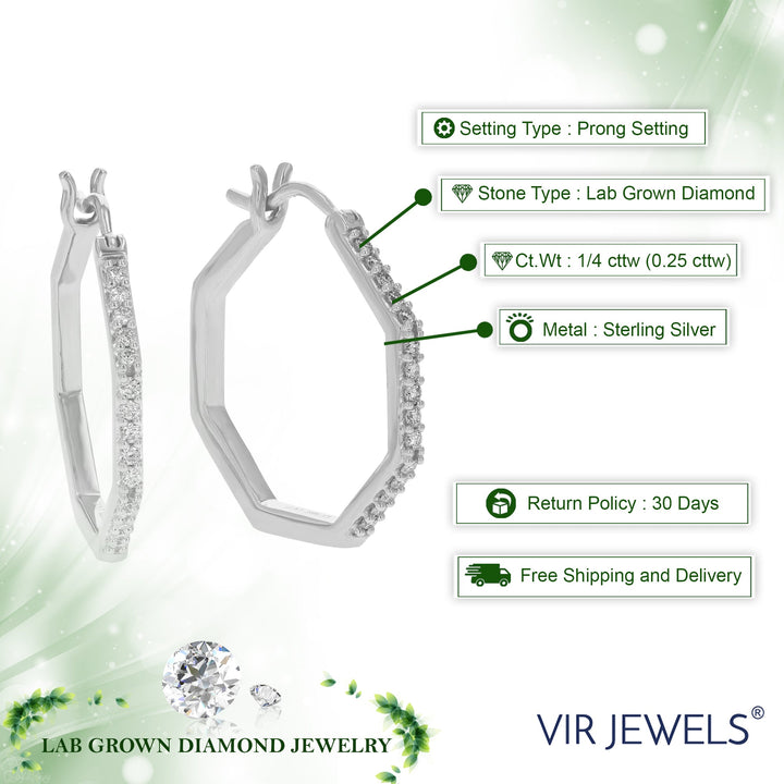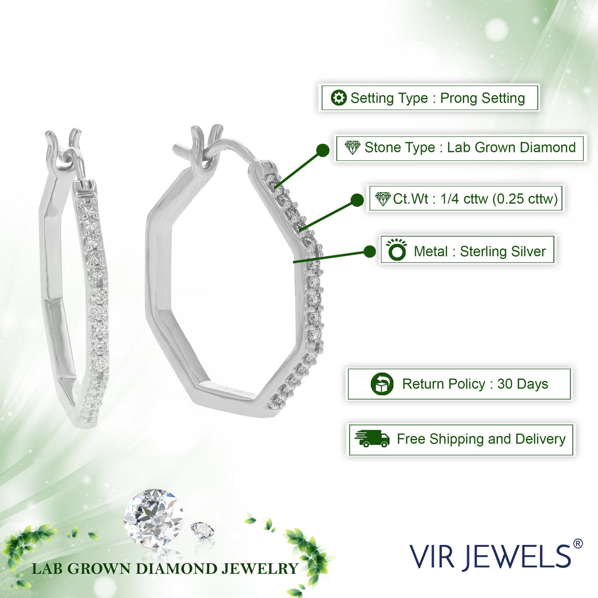 These 1/4 Cttw Lab-Created Diamond Hoop Earrings by Vir Jewels offer a sleek silhouette with refined sparkle. Each hoop is crafted in sterling silver and adorned with 30 lab-grown diamonds in a prong setting that maximizes light and brilliance. The three-quarter inch height provides an elegant elongation to the ear, making them ideal for both day and night styling. Designed for everyday luxury with a conscious touch, these hoops are a modern jewelry essential.