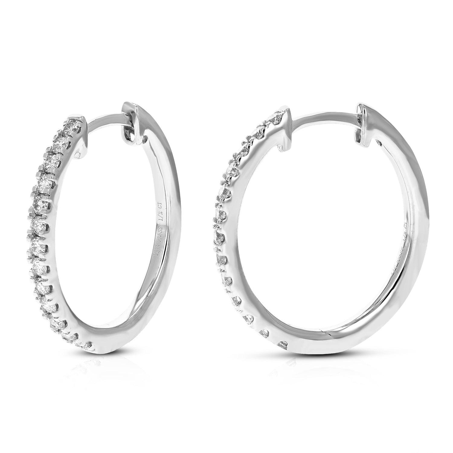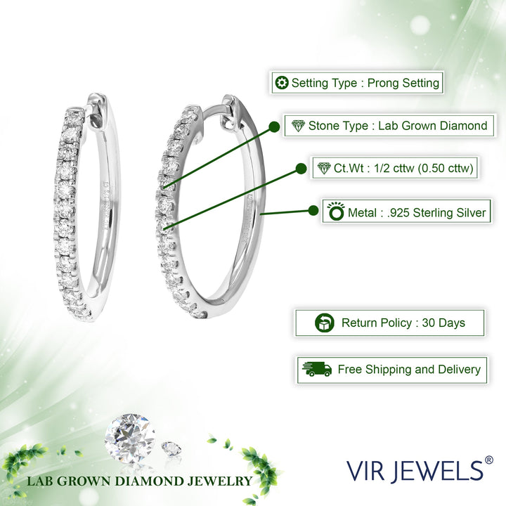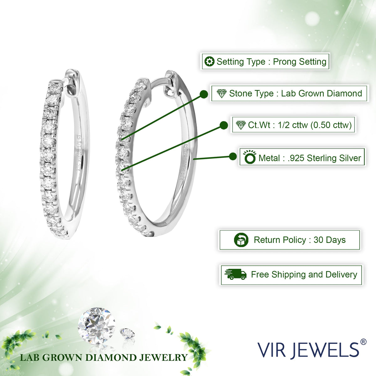 1/2 Cttw Lab Created Diamond Hoop Earrings 925 Sterling Silver Prong 3/4 Inch