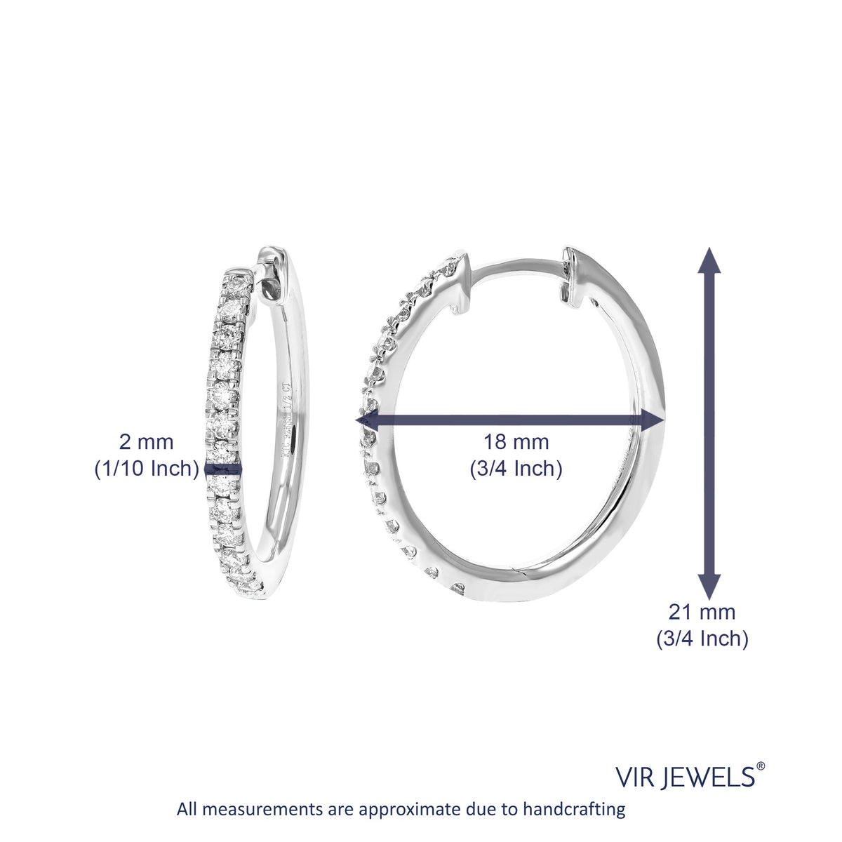These 1/2 Cttw Lab-Created Diamond Hoop Earrings by Vir Jewels are the perfect combination of chic style and responsible luxury. Crafted in sterling silver, each hoop features 26 sparkling round lab-grown diamonds arranged in classic prong settings that allow for maximum brilliance. With a graceful 3/4-inch height and sleek 2mm width, they offer a balanced and polished look for any occasion. Designed for modern elegance, these hoops elevate both everyday wear and elevated ensembles.