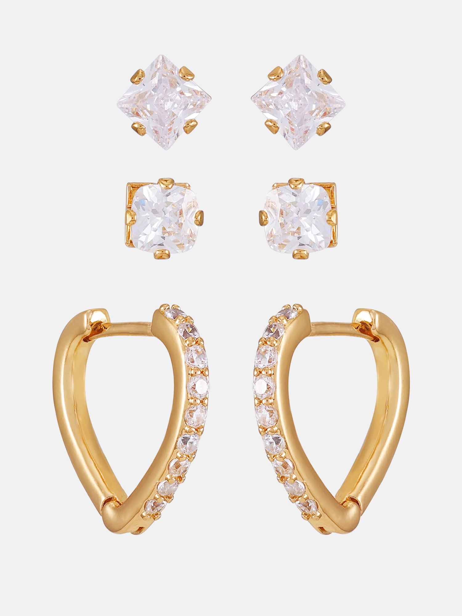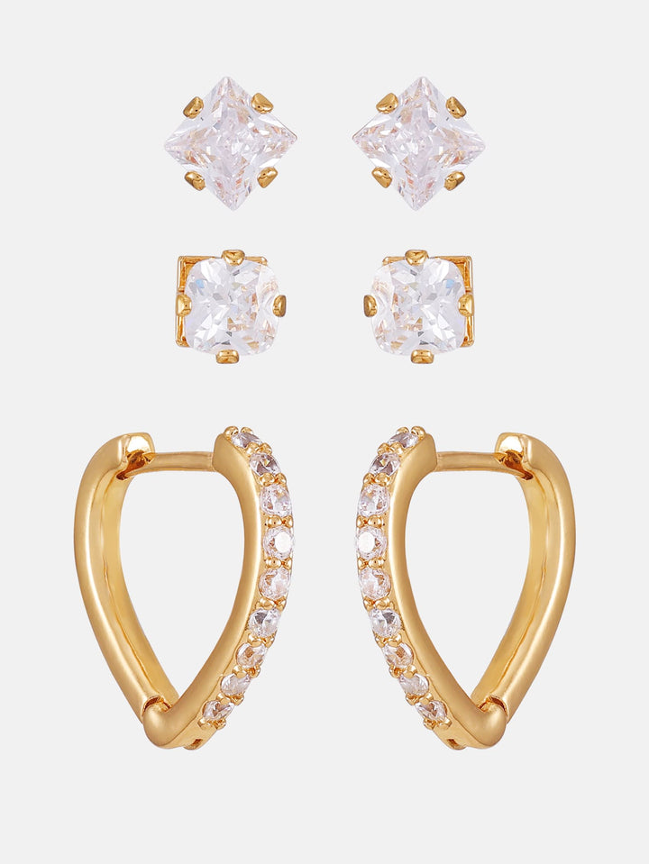 Gold-tone Stud & Huggie Earrings Box Set - 3 Pairs