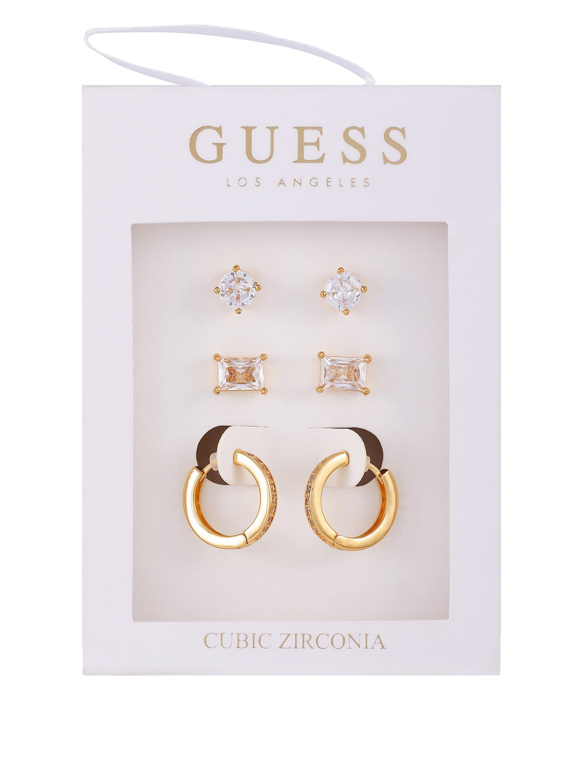 This Gold-tone Stud & Huggie Earrings Box Set - 3 Pairs by Guess Factory: A versatile and chic addition to any jewelry collection, this box set includes three pairs of earrings: two huggies and one pair of stud earrings. Each pair is designed in a warm gold-tone metal, offering a sophisticated touch suitable for both casual and formal occasions. The set's mix of studs and huggies provides endless styling options, making it a perfect everyday set or a thoughtful gift. Add a touch of elegance and flexibility to your jewelry collection with these sleek, high-quality pieces.