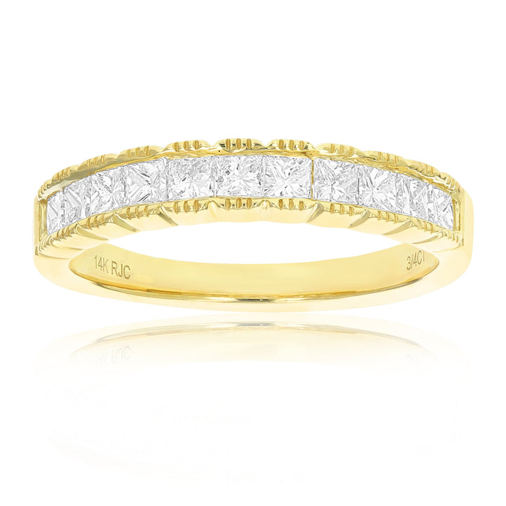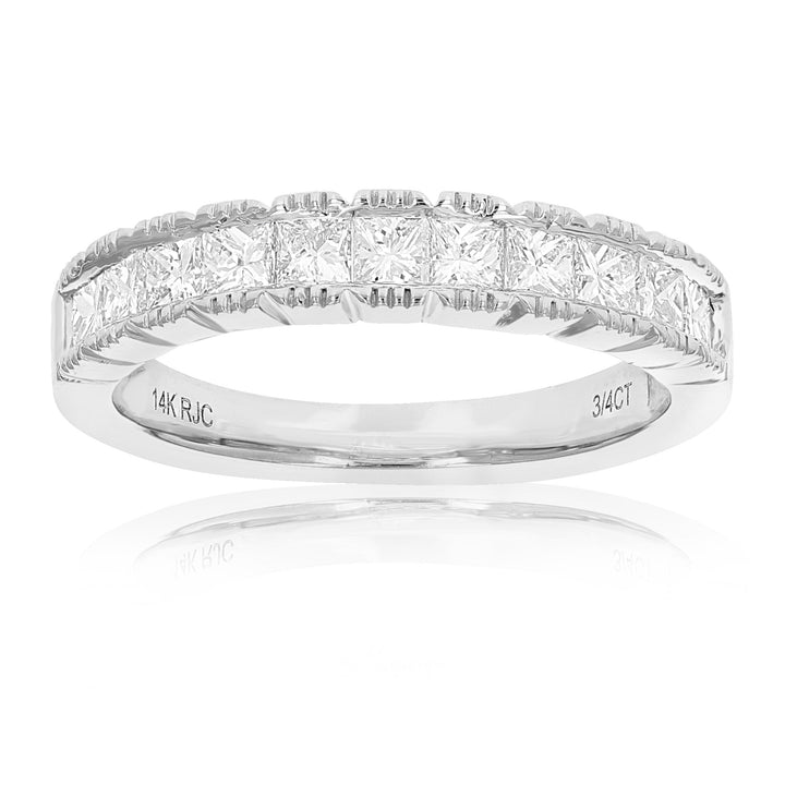 3/4 Cttw Princess Cut Diamond Wedding Band With Milgrain In 14K Gold Channel Set