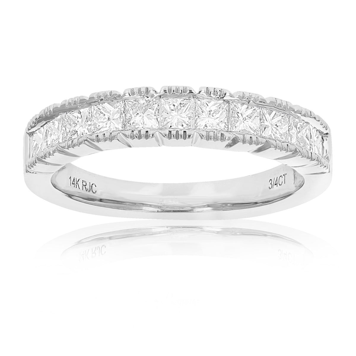 11 princess-cut diamonds, 14K white or yellow gold, 0.75ct total carat weight, I-J color, I1-I2 clarity.