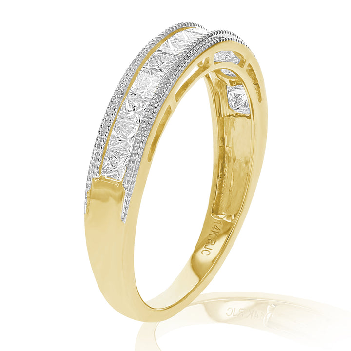 3/4 Cttw Princess Cut Diamond Wedding Band With Milgrain In 14K Gold