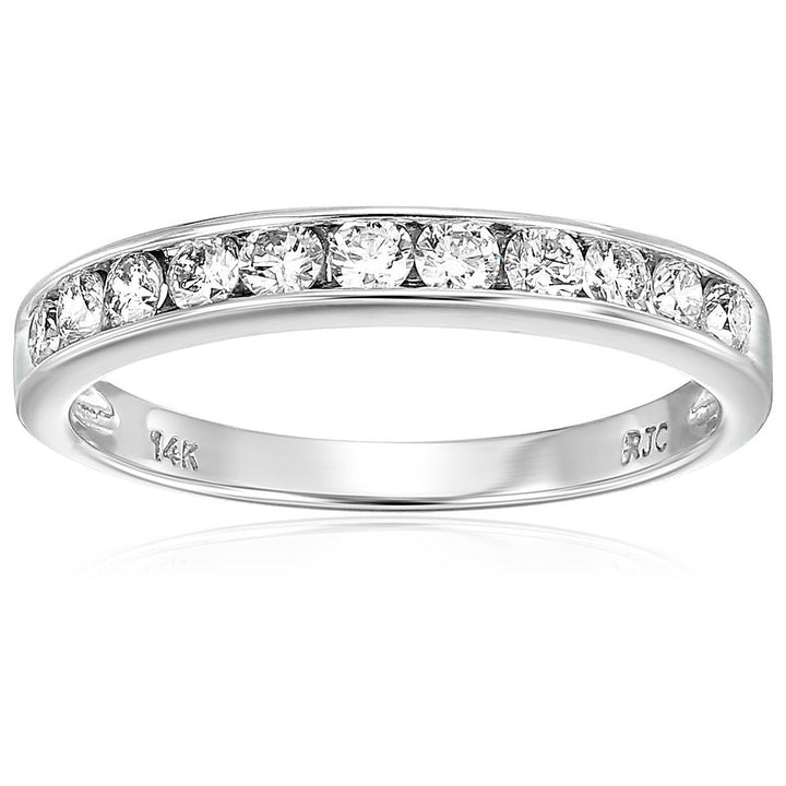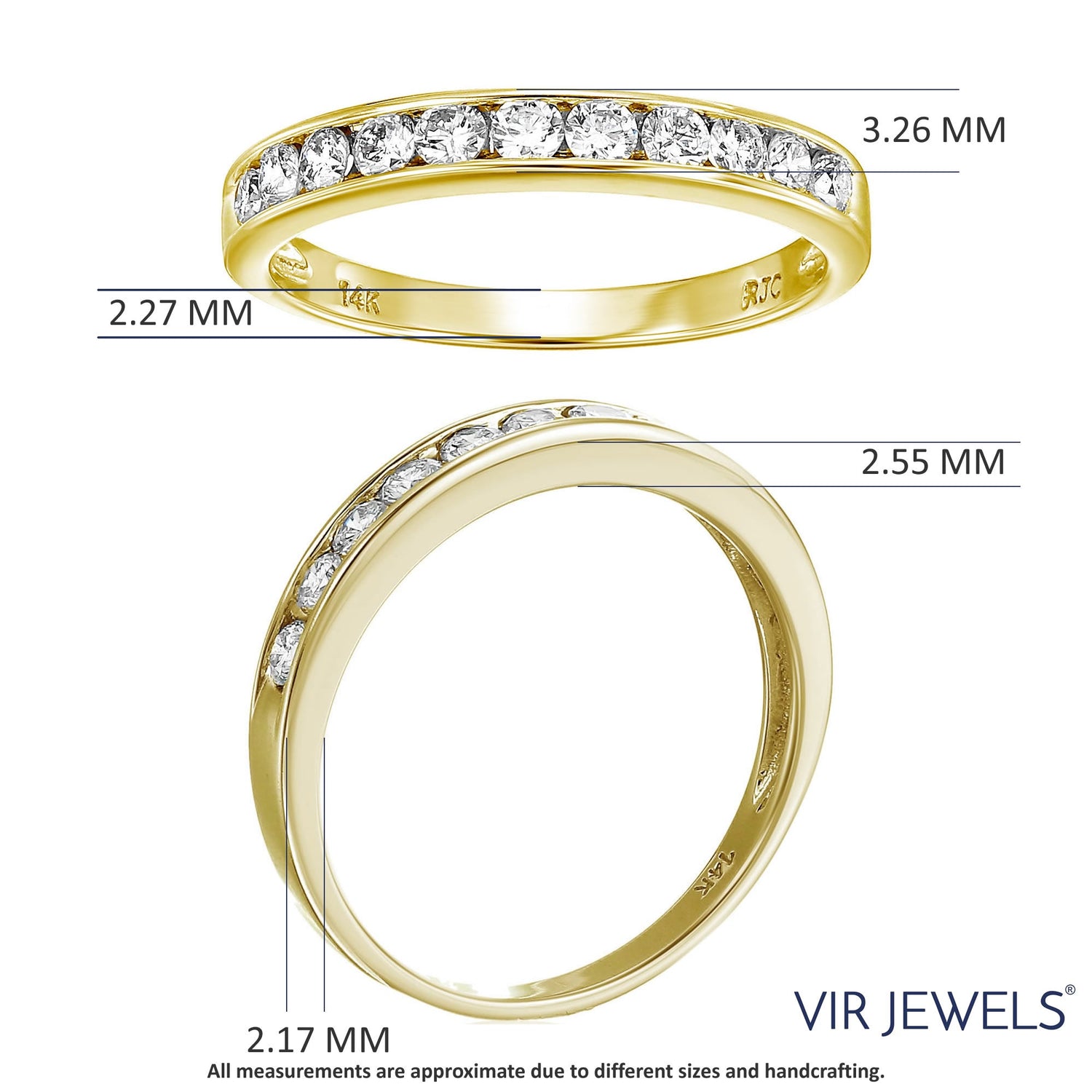 This 3/4 Cttw Classic Diamond Wedding Band in 14K Gold by Vir Jewels is crafted with 10 sparkling natural diamonds set in a channel setting. This elegant band can be worn alone or stacked with other rings to create a unique look. A perfect addition to any bridal collection, this band offers timeless beauty with its classic design.