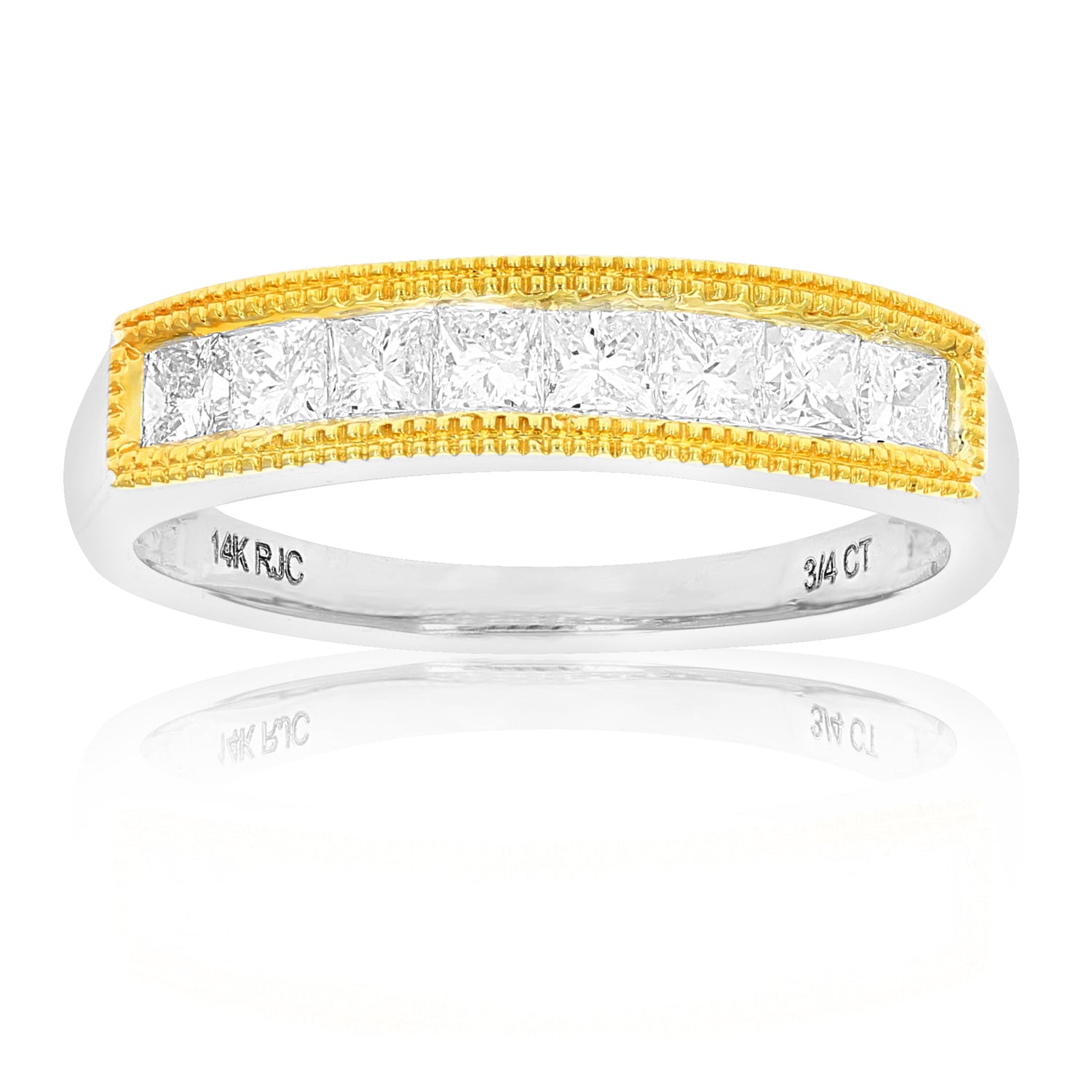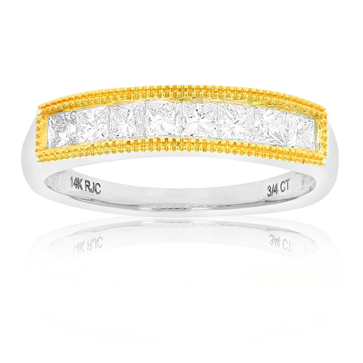 3/4 Cttw Princess Cut Diamond Wedding Band With Milgrain In 14K Gold