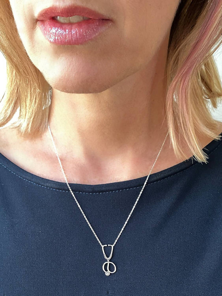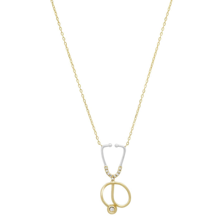 14K yellow and white gold. Nine 0.8mm pave diamonds, one 1.5mm bezel-set diamond. Adjustable faceted chain (16½ inches to 18½ inches). Made in the USA.