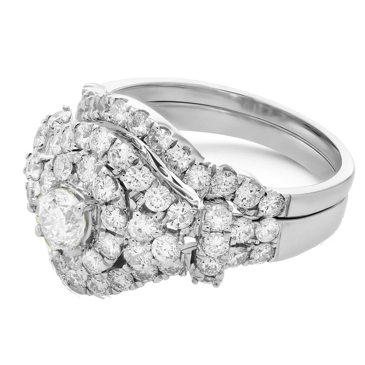 2 Cttw Diamond Wedding Engagement Ring Set 14K White Gold Cluster Bridal Design