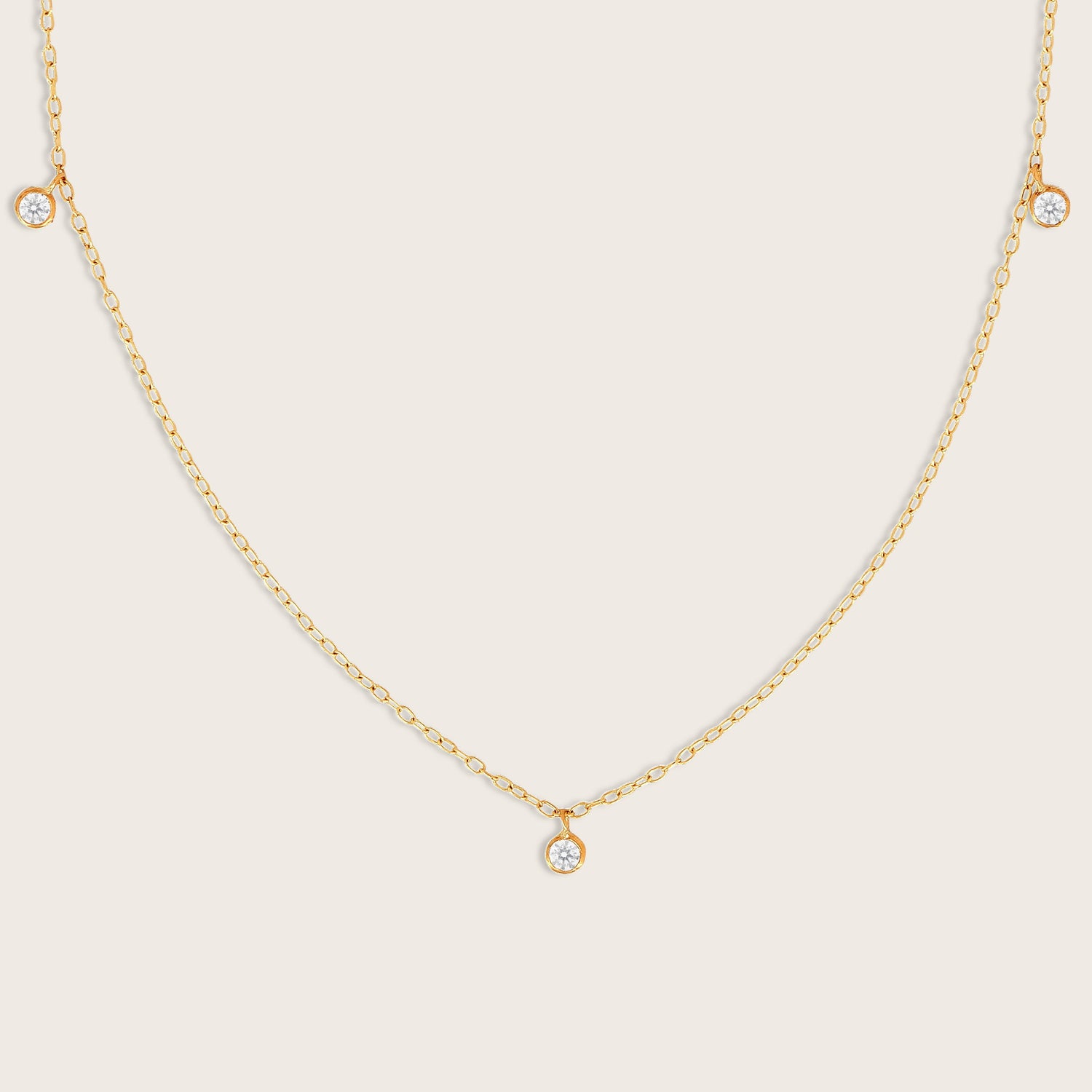 Crafted in 14k yellow gold with three 1.7mm lab-grown diamonds (0.06ctw). 16" chain with a 2" extender. Spring ring clasp.