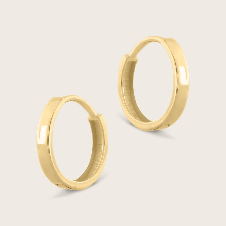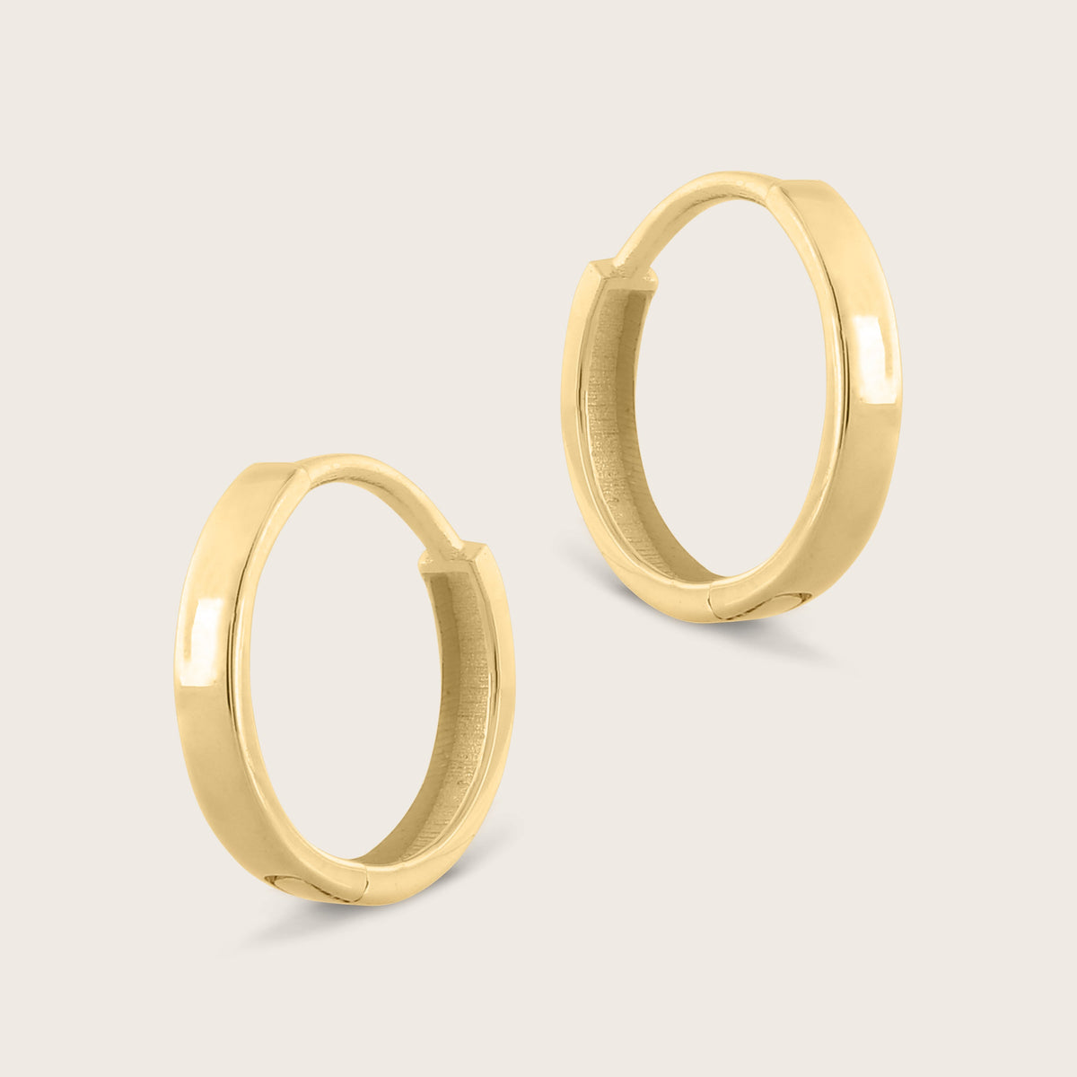 14k Gold 10mm Flat Huggie Hoop Earrings