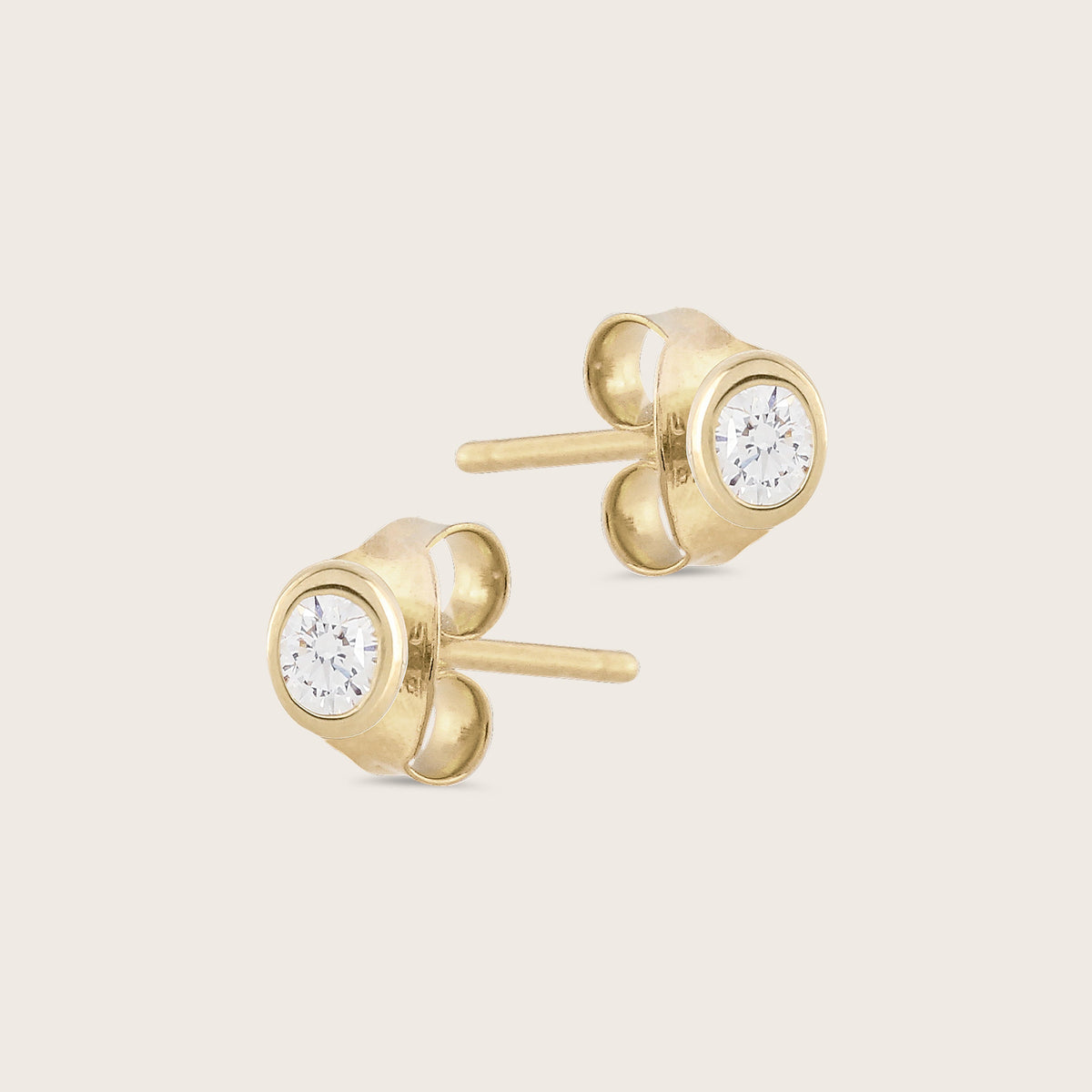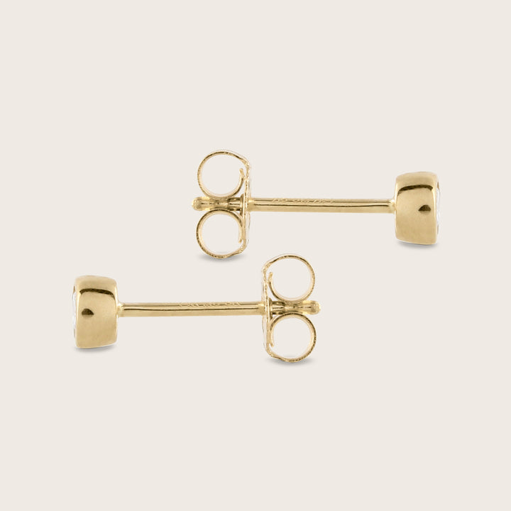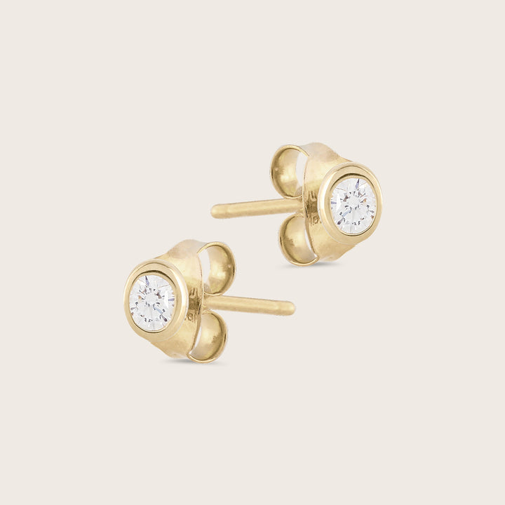 Crafted from 14K yellow gold, these earrings feature 0.2ct of lab-grown diamonds in a bezel setting. They have 4mm studs with post back closures for a secure fit.
