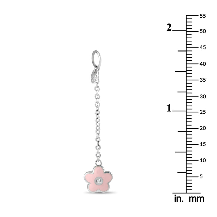 Aaron Basha 18K White Gold Diamond And Enamel Pink Flower Charm Pendant AB20-111824