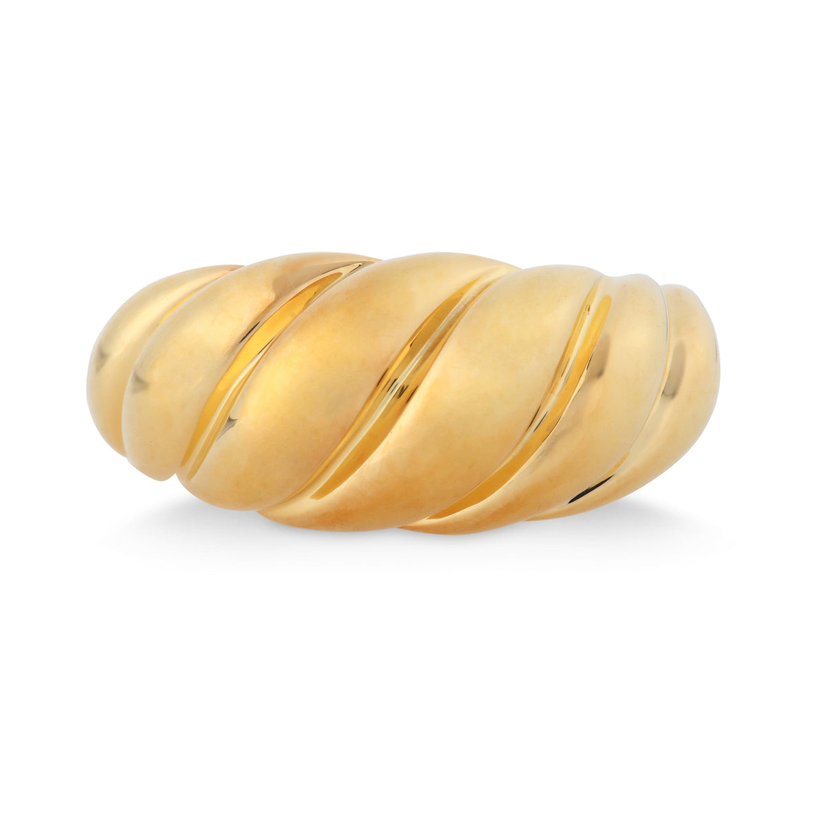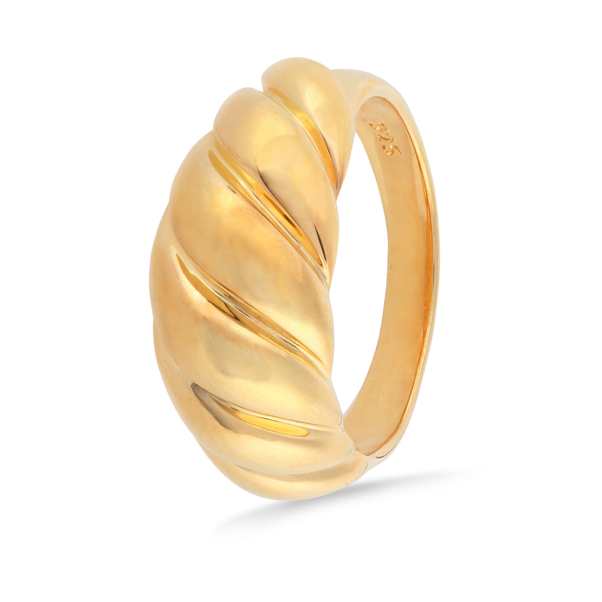 This 18K Gold Vermeil Croissant Ring by Pajure features an elegant croissant dome design that adds a luxurious touch to any look. The intricate detailing and the high-quality 18K gold vermeil make this ring a standout piece in your jewelry collection. Its exclusive design offers a sophisticated and timeless appeal, perfect for any occasion.