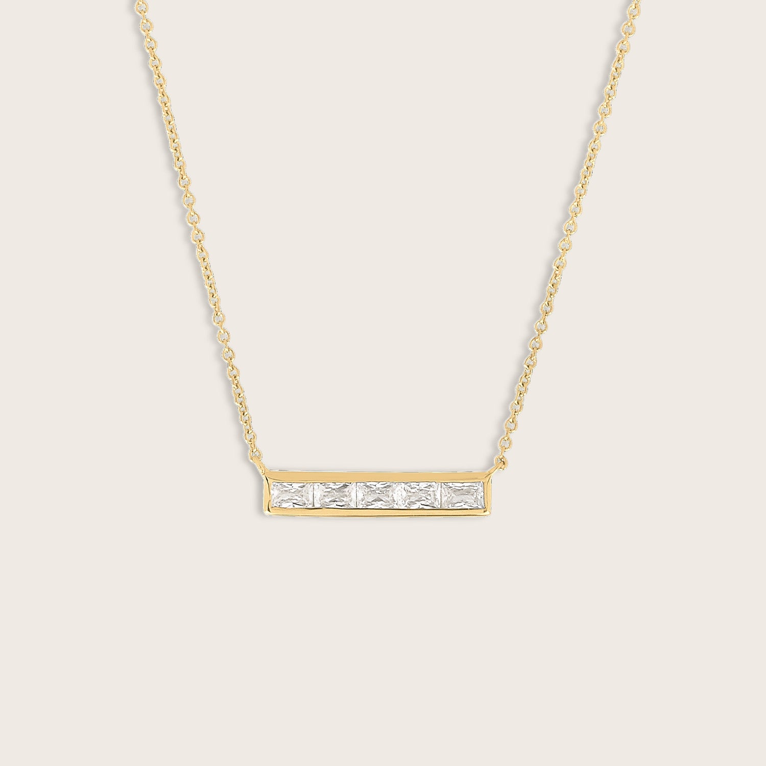 18k Gold Vermeil Baguette CZ Bar Pendant Necklace