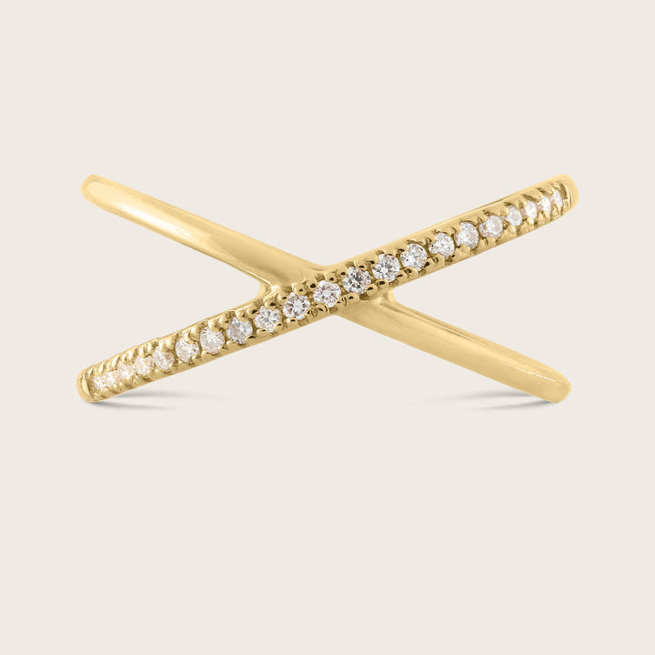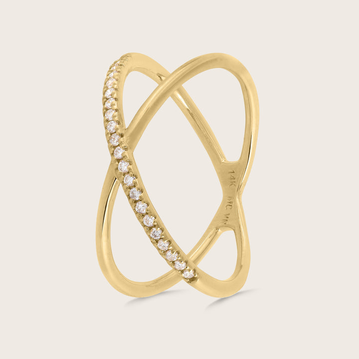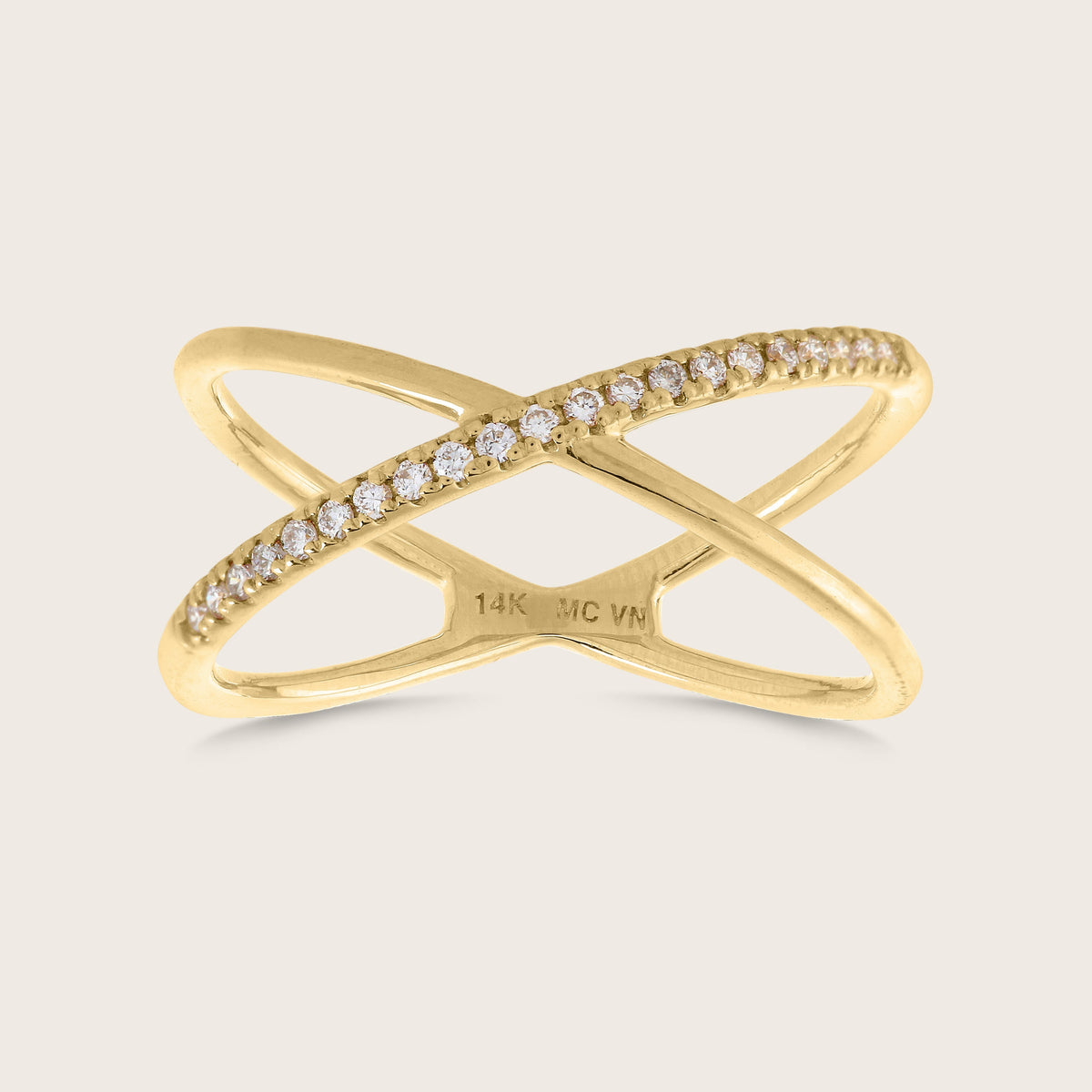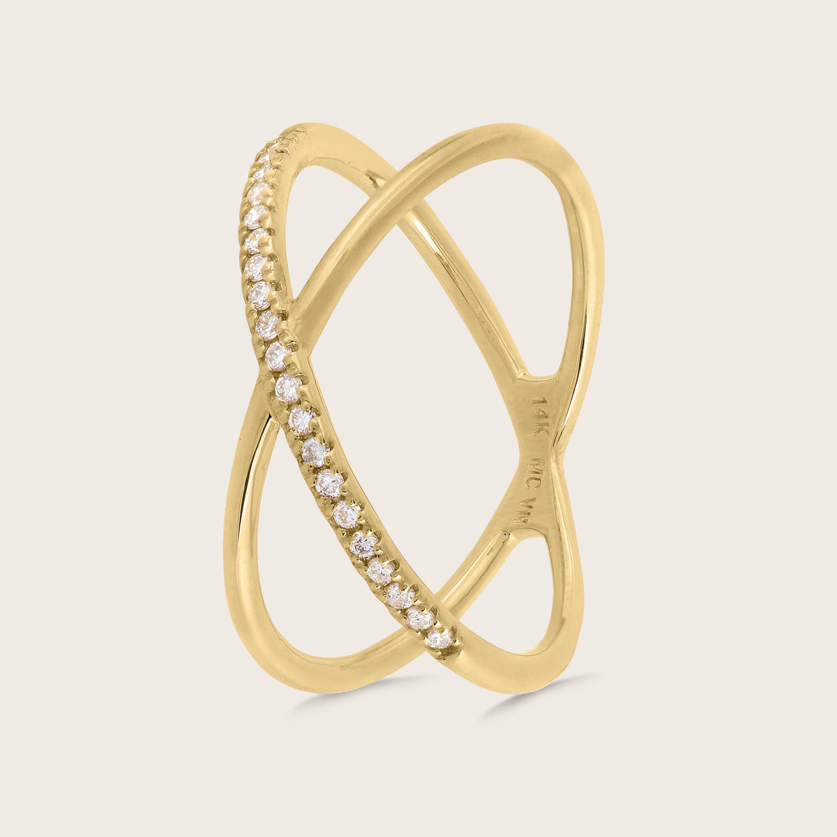 14k Yellow Gold Pavé Lab Grown Diamond X Ring