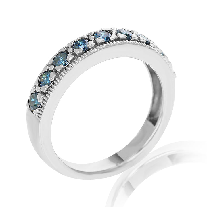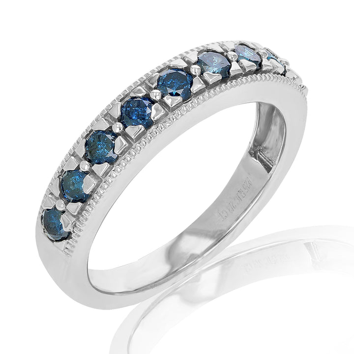 2/3 Cttw Blue Diamond Wedding Band .925 Sterling Silver Prong Set