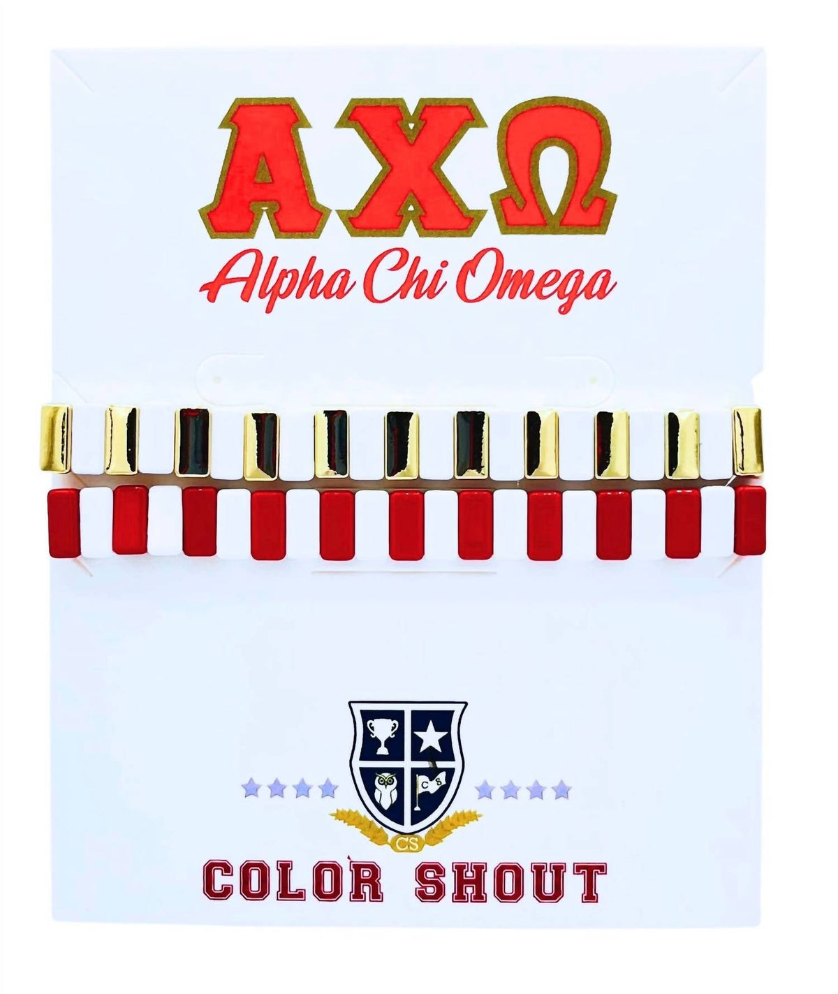 Unisex - Alpha Chi Omega Enamel Tile Double Stack Bracelet in Red/gold/white
