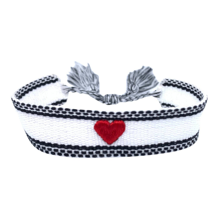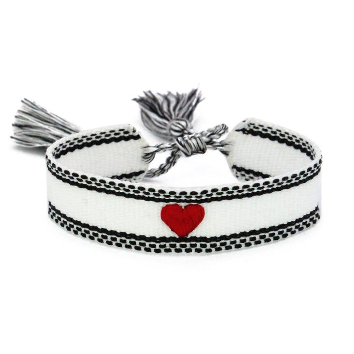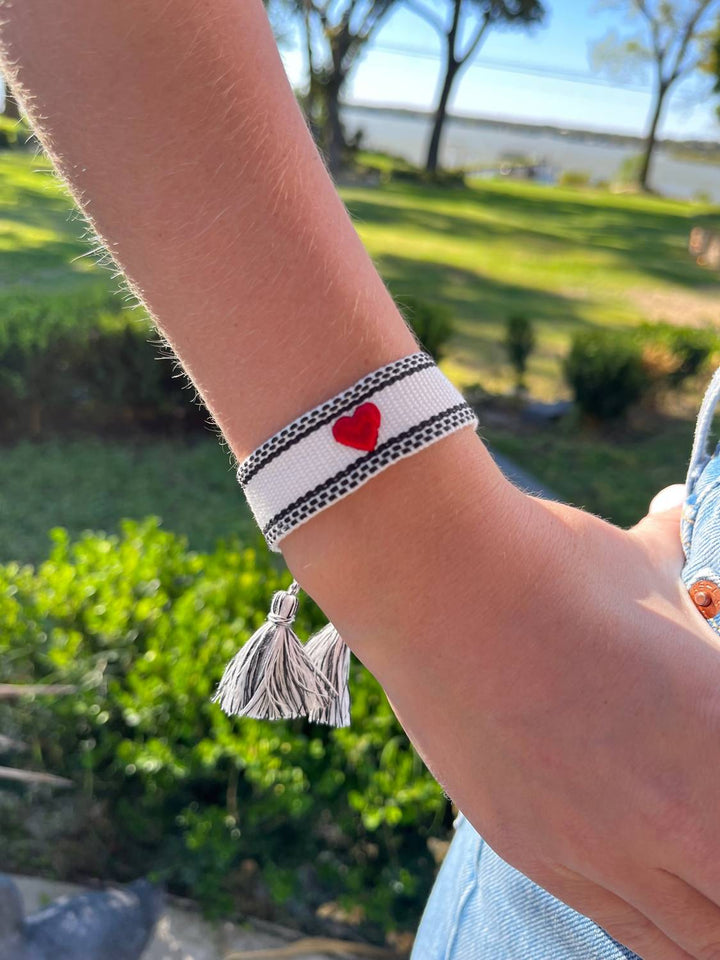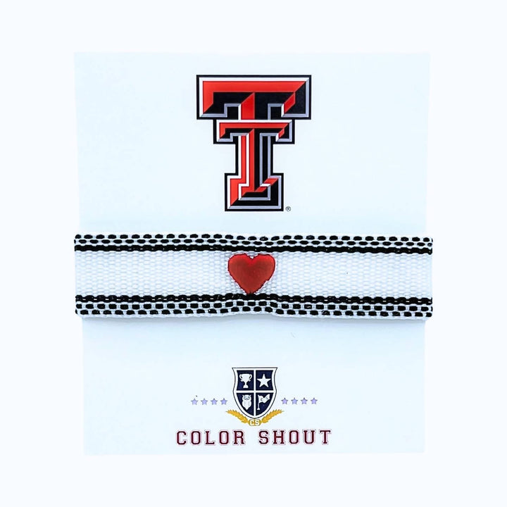 Women's I Love Texas Tech: Heart Spirit Band Tassel Bracelet in White