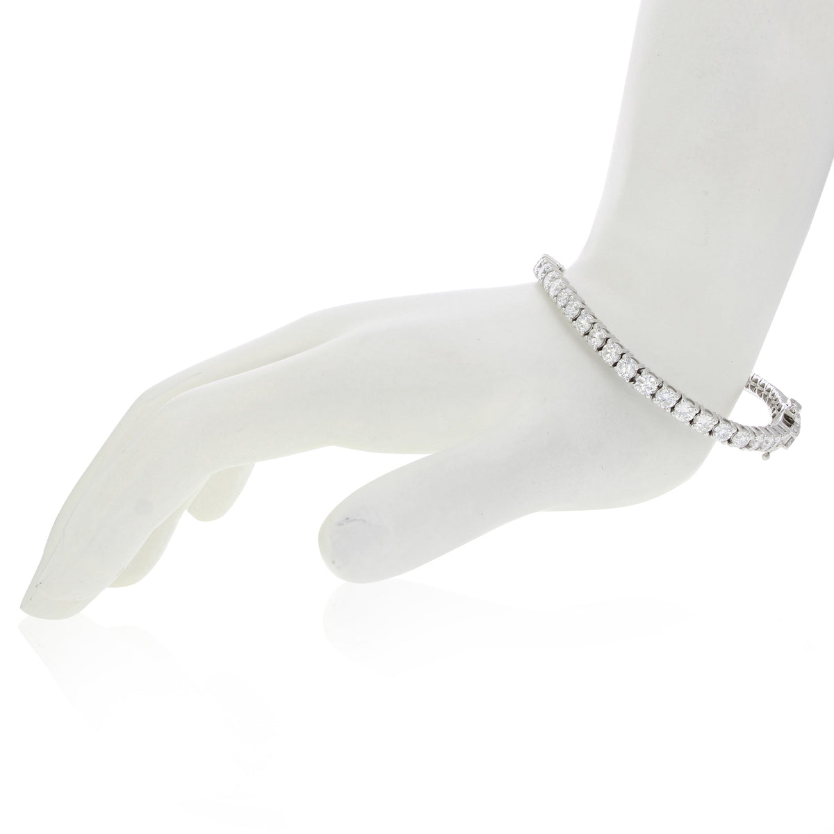 This dazzling 7 cttw lab-grown diamond tennis bracelet, set in 14K white gold, features 50 round brilliant-cut diamonds (H-I color, SI1-SI2 clarity). A secure box and tongue clasp make this bracelet a perfect combination of elegance and durability.