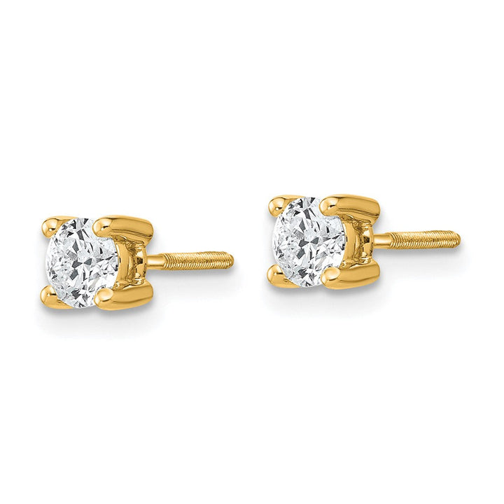 These 14K Yellow Gold 1/2 CT Round Lab-Grown Diamond Stud Earrings with Screw Back by Diamond2Deal offer secure and sophisticated wear. Featuring brilliant diamonds with D-E color and VS clarity, these studs provide a timeless sparkle perfect for any event.