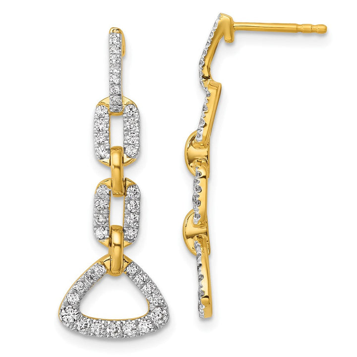 These 14K Yellow Gold 2/3 CT Lab Grown Diamond Fancy Dangle Earrings are a sophisticated and sustainable choice for any occasion. Featuring G-H color and VS clarity diamonds, these elegant earrings add unmatched sparkle to your ensemble. Ideal for both casual and formal events, they are a timeless addition to your collection.