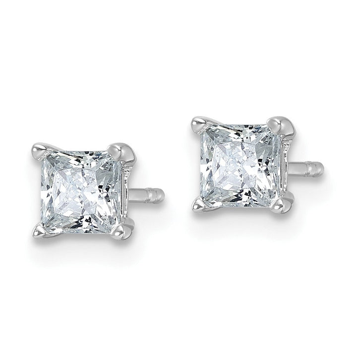 14K white gold, 1ct total weight princess-cut lab-grown diamonds (VS clarity, D-E color). Earring Style: Stud.