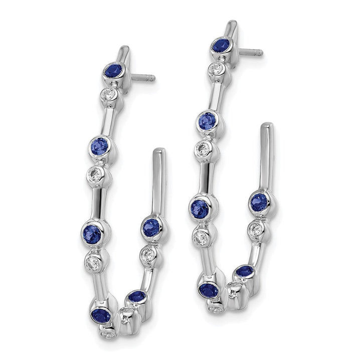 14k White Gold 1/5 CT Lab Grown Diamond And Blue Sapphire Hoop Earrings VS Clarity D-E Color