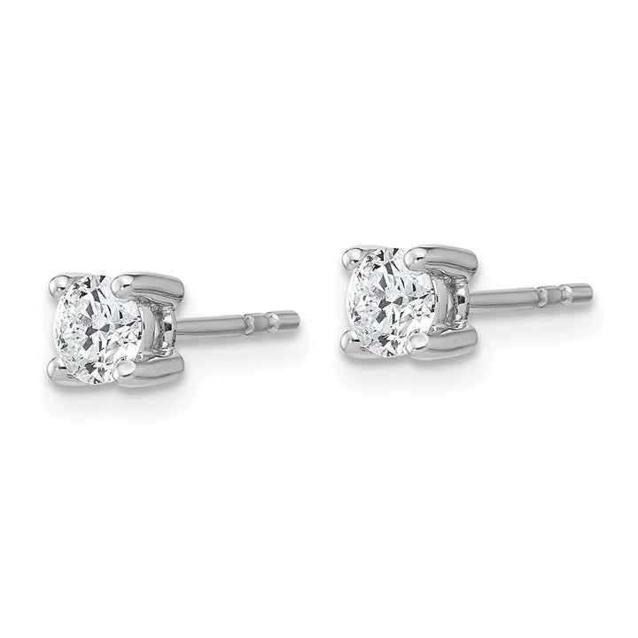 14K white gold with 1/2 CT round lab-grown diamonds, VS clarity, D-E color. Push-back closure. Earrings weigh 1 gram.