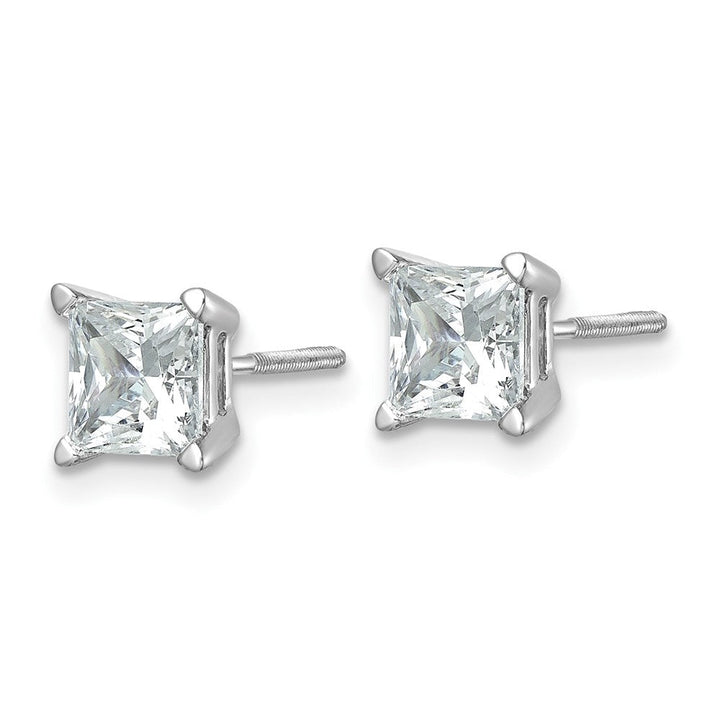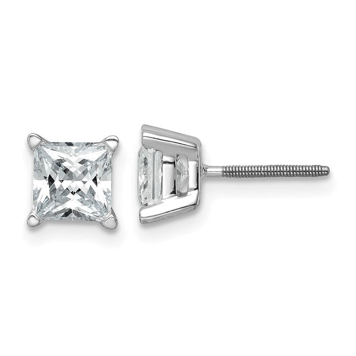 14K white gold, 2ct total weight princess-cut lab-grown diamonds (VS clarity, D-E color). Earring Style: Stud. Weight: 1.33g.