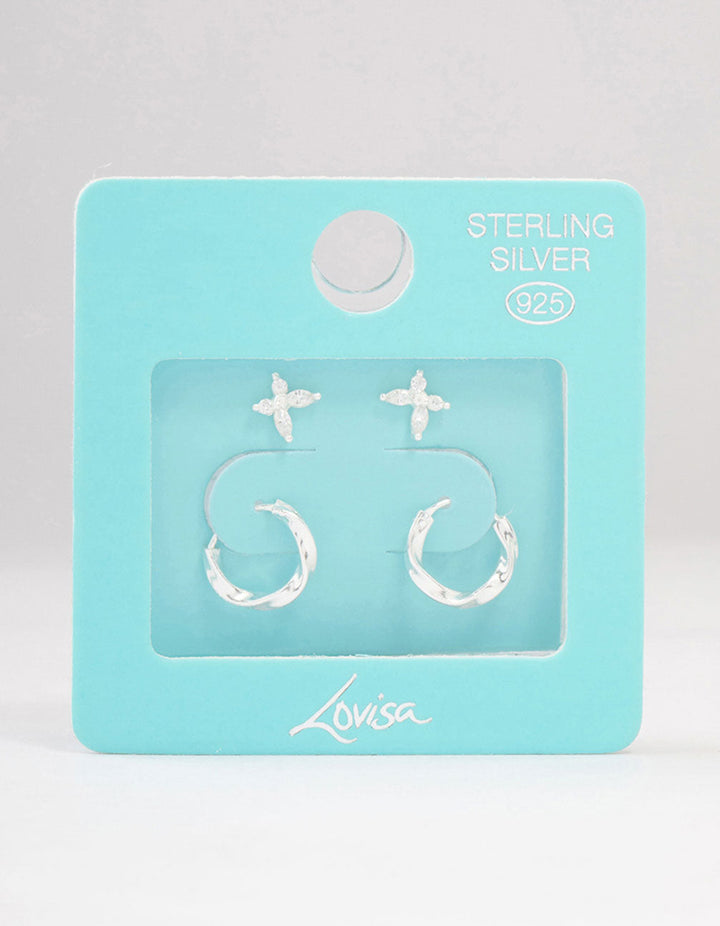 Lovisa - Sterling Silver Butterfly & Hoop Stud Earrings 2-pack