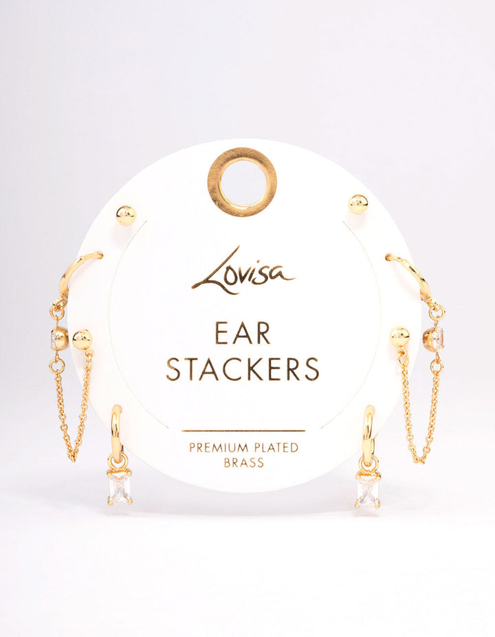 Lovisa Gold Plated Baguette Hoop Chain Earring 4-pack