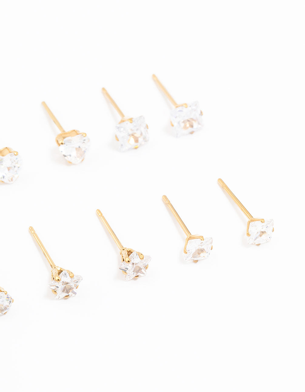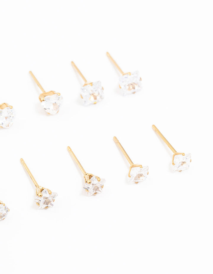 Lovisa Waterproof Gold Plated Stainless Steel Cubic Zirconia Stud Earrings 6-pack