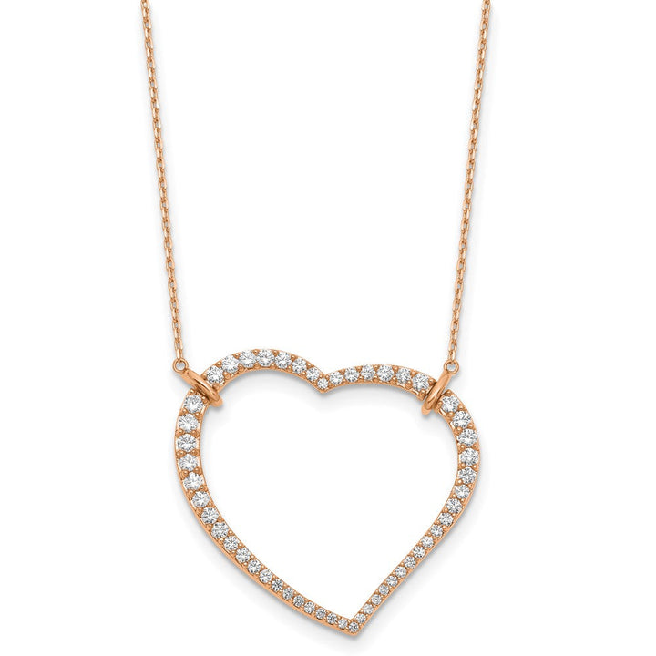 This 14K Gold 1 3/4 CT Lab Grown Diamond Open Heart Necklace 18' by Diamond2Deal is an elegant piece that combines the brilliance of 1.75 carats of lab-grown diamonds set in a 14K rose gold open heart pendant. This necklace adds a touch of romance and sophistication to any outfit.