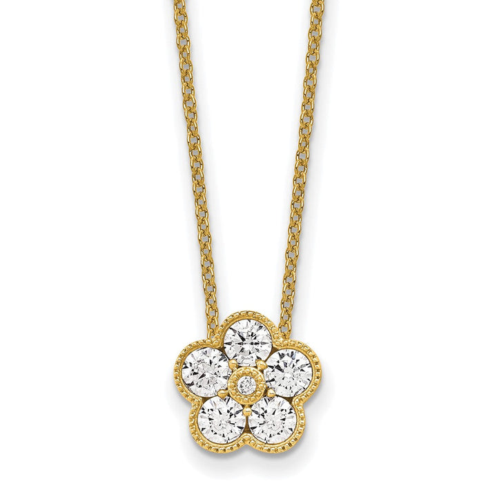 14K Gold 3/4 CT Lab Grown Diamond Floral Necklace 18' Clarity VS Color D-E