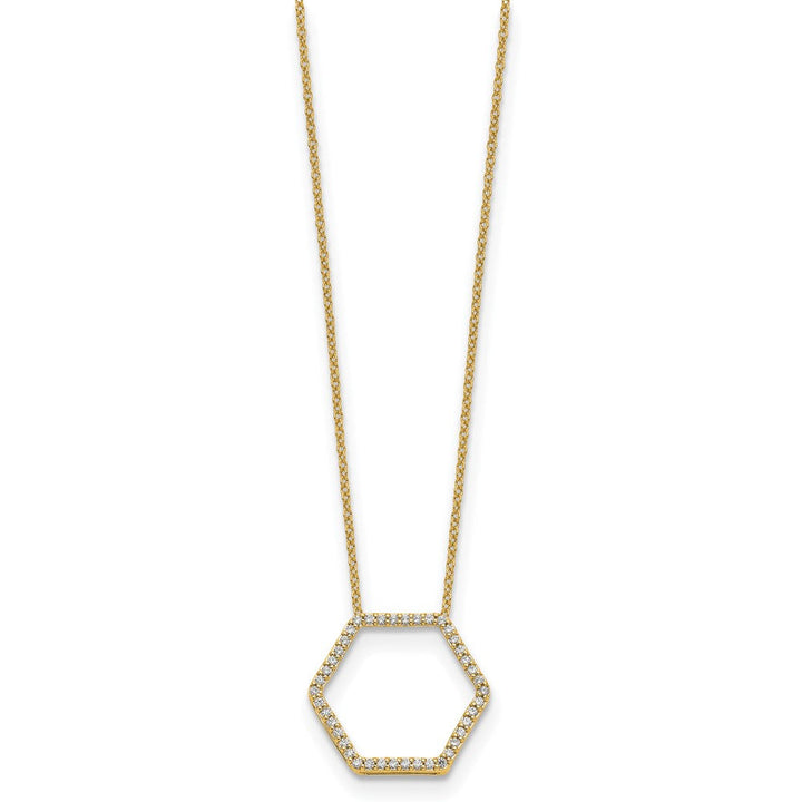 14k Gold 1/4 CT Lab Grown Diamond Hexagon Necklace 18' Clarity VS Color D-E