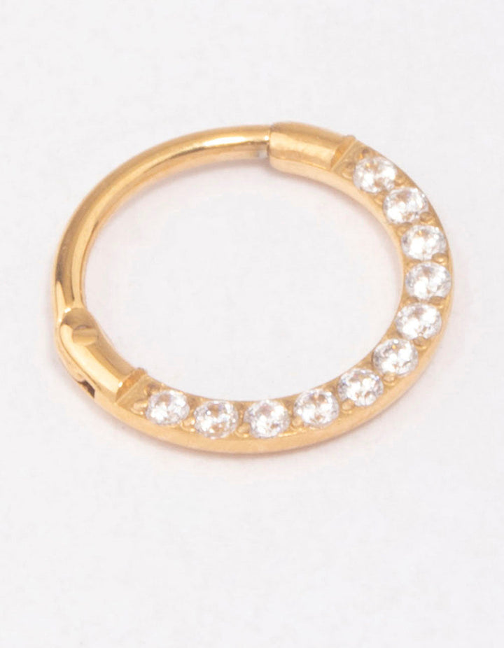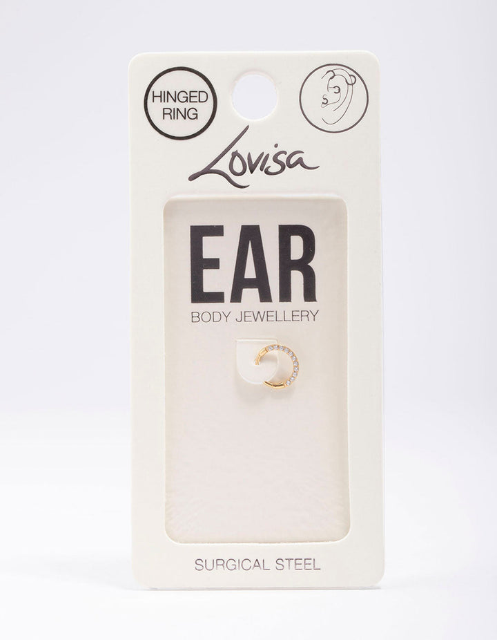 These Lovisa Gold Plated Cubic Zirconia Clicker Earrings 7mm by Lovisa are perfect for adding a trendy, stylish touch to your look. Crafted from hypoallergenic gold-plated brass, these 7mm earrings feature sparkling cubic zirconia and are designed for wear in a variety of piercings, including helix, conch, and septum. Ideal for special events or everyday wear, these earrings are a must-have in any jewelry collection.