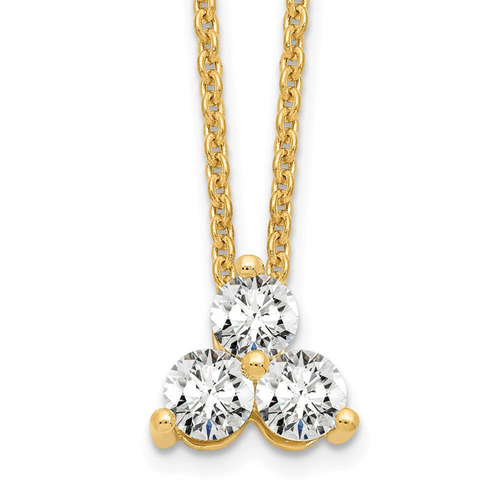 14K Gold 3/8 CT Lab Grown Diamond Three Stone Necklace 18' Clarity VS Color D-E