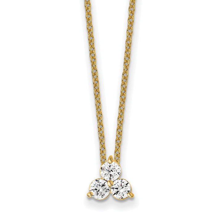 14K Gold 3/4 CT Lab Grown Diamond 3 Stone Necklace 18' Clarity VS Color D-E