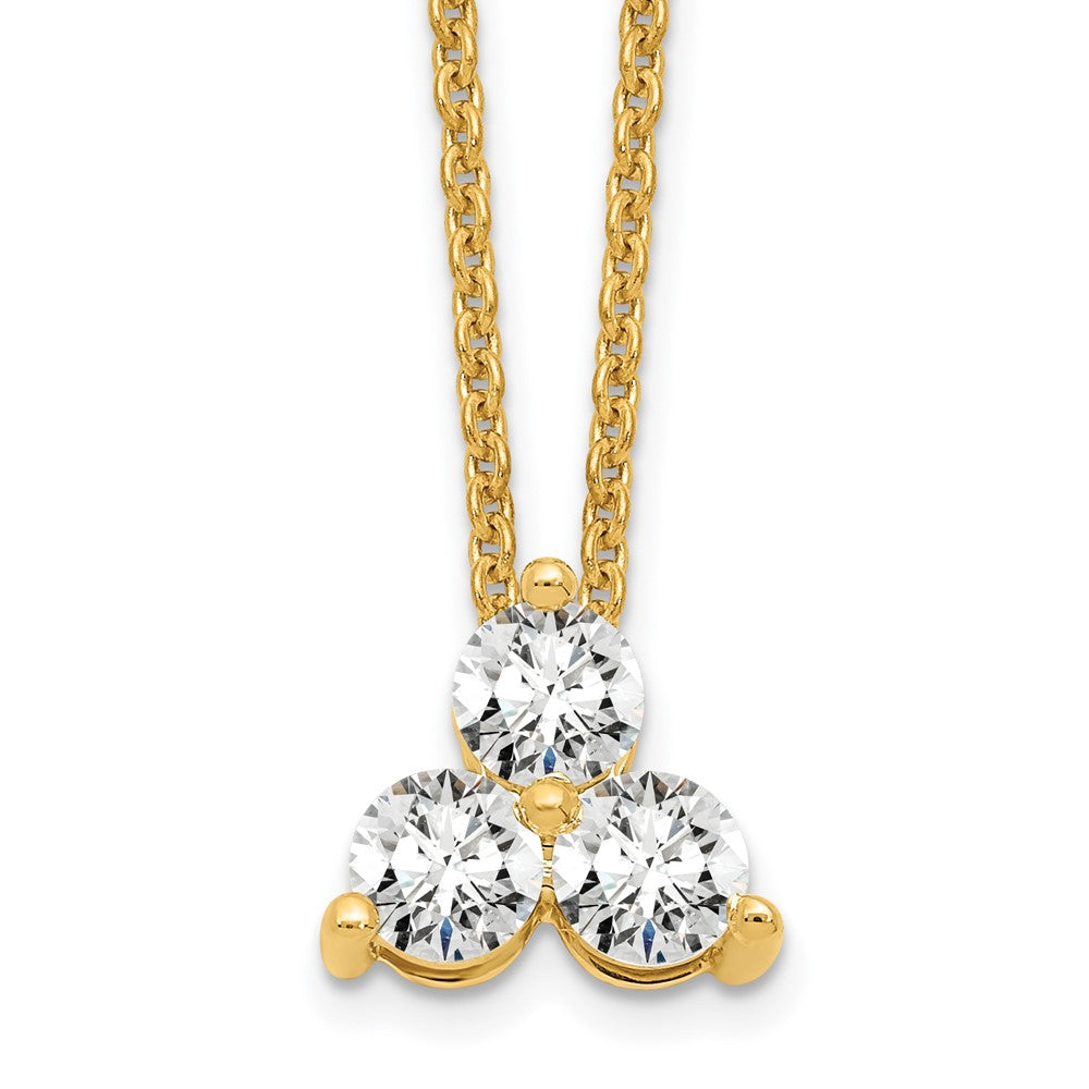 14K Gold 1/2 CT Lab Grown Diamond Three Stone Necklace 18' Clarity VS Color D-E