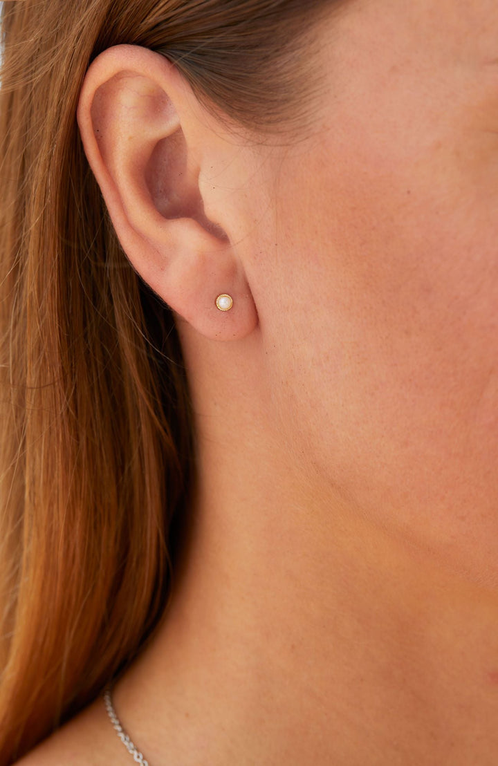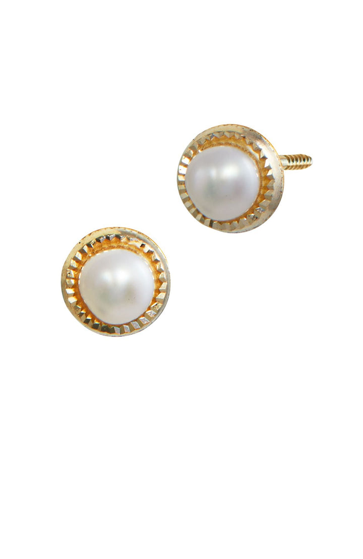 Handcrafted in 14KT Gold with 3mm Cultured Freshwater Pearls. Earring style: Stud.