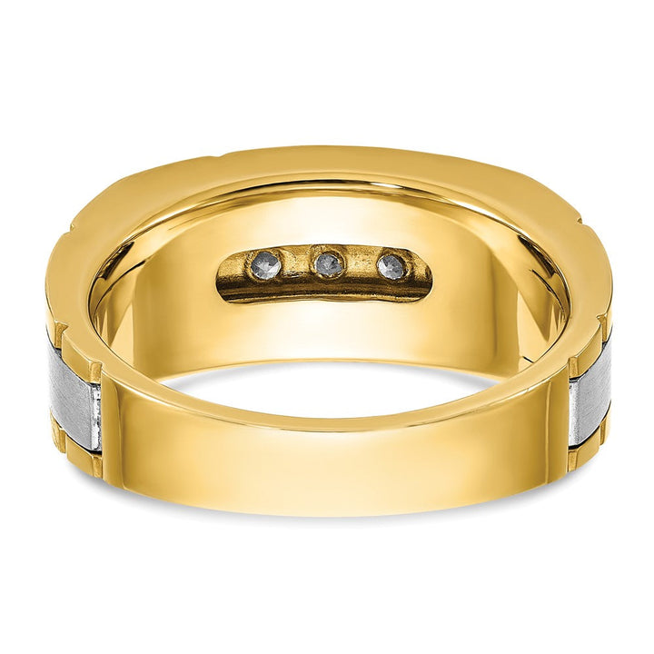 This 14K Two-Tone Lab Grown Diamond 5-Stone Band Ring by Diamond2Deal is an elegant eternity band designed to offer unmatched sparkle and sophistication. Featuring five lab-grown diamonds with G-H color and VS clarity, totaling 0.16 carats, this ring is a perfect combination of eco-conscious craftsmanship and timeless beauty. Whether worn alone or paired with other bands, this ring enhances any outfit and is ideal for both daily wear and special occasions. Its radiant brilliance makes it a standout piece in any collection.