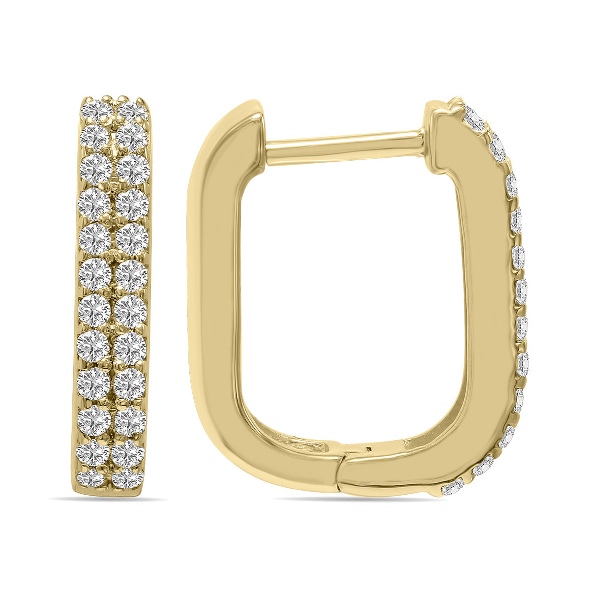 These Oval Lab Grown Diamond Huggie Hoop Earrings by SSELECTS offer a refined balance of radiance and modern minimalism. With their sleek oval silhouette and seamless huggie fit, they curve gently around the earlobe, fully embellished in lab-grown diamonds totaling 1/4 carat. The gleaming 10K yellow gold and close-set sparkle create a polished yet understated look that transitions from day to night with ease.