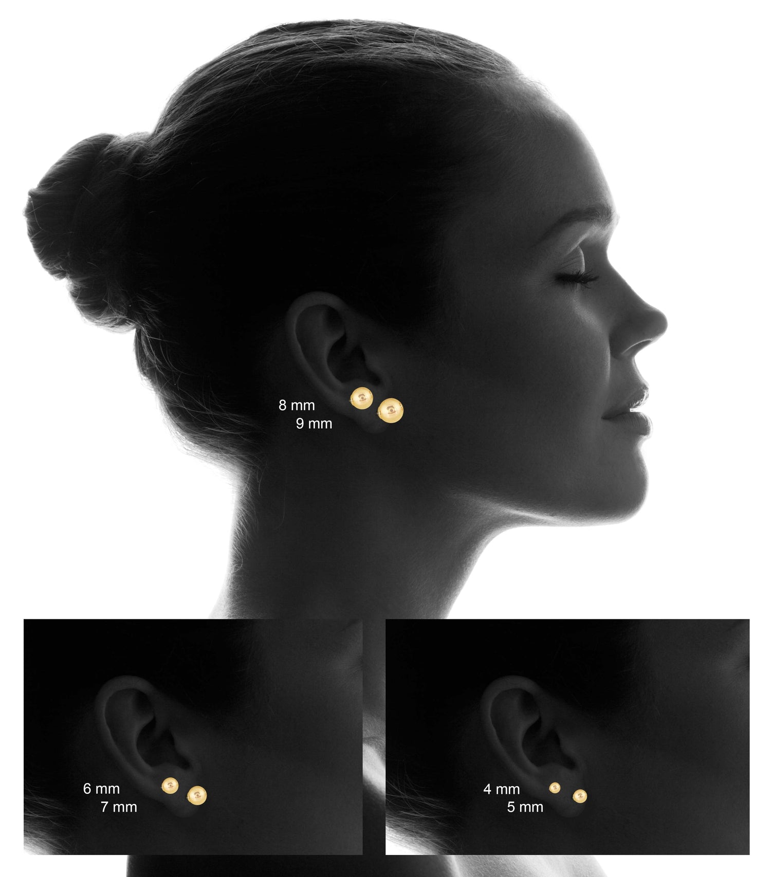 These 14K Yellow Gold 8mm Laser Cut Ball Stud Earrings by SSELECTS: These laser-cut satin finish ball stud earrings are crafted in 14K yellow gold, measuring 8mm in diameter. Perfect for everyday wear, these earrings offer subtle sparkle and a timeless design, secured with durable push-back butterfly closures.