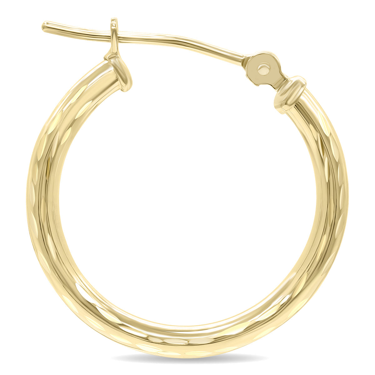 10K Yellow Gold Shiny Diamond Cut Engraved Hoop Earrings 20mm