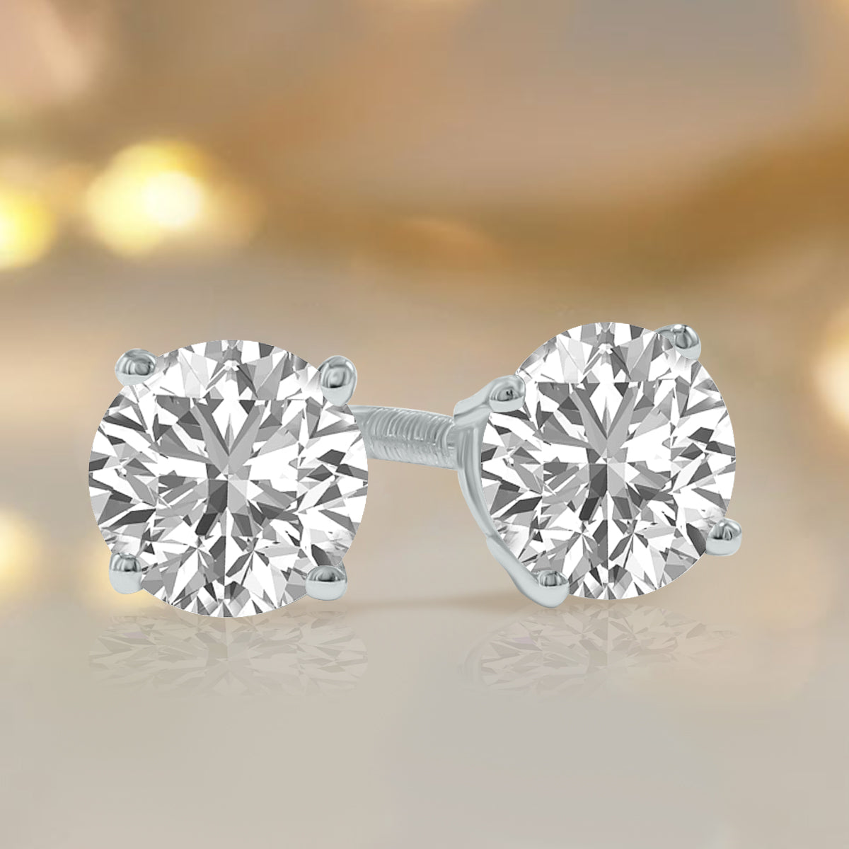 Igi Certified 1 Carat TW Lab Grown Diamond Solitaire Earrings In 14K White Gold