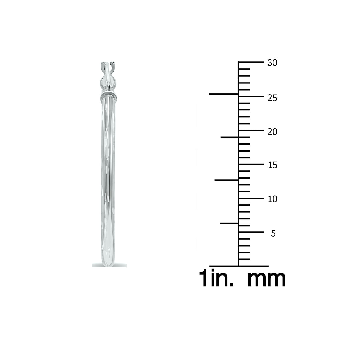 10K White Gold Shiny Diamond Cut Engraved Hoop Earrings 30mm