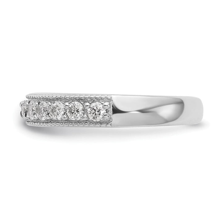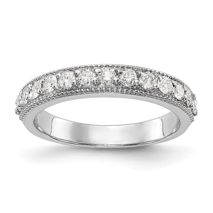 This 14K White Gold Lab Grown Diamond Wedding Band Ring by Diamond2Deal is designed with D-E color and VS clarity diamonds, offering unmatched sparkle. The eternity band design adds sophistication, making it perfect for both daily wear and special events. This sustainable and timeless piece is an essential addition to any jewelry collection.