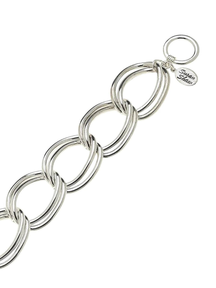 This Smooth Chain Bracelet in Silver by Susan Shaw features a sleek, smooth chain design that is both simple and elegant. The adjustable size ensures the perfect fit for most wrists, and its high-quality metal ensures durability. Handmade in San Antonio, TX, this bracelet is an essential piece for any jewelry lover.