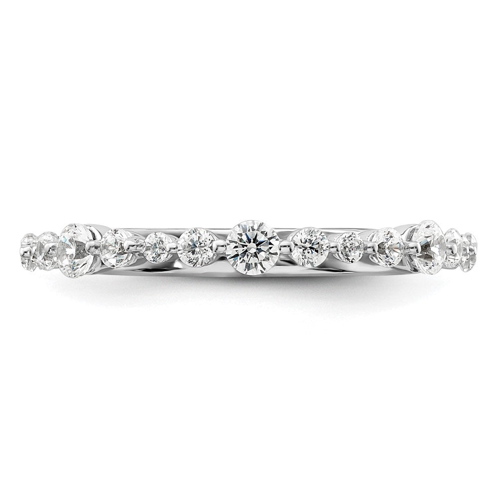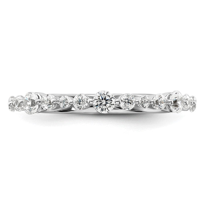 This 14K White Gold Lab Grown Diamond Wedding Band Ring by Diamond2Deal features brilliant G-H color and VS clarity diamonds. Designed as an eternity band, it symbolizes lasting love. The timeless design provides exceptional sparkle, making it ideal for both daily wear and special occasions. This sustainable piece effortlessly elevates any outfit, an essential addition to your jewelry collection.