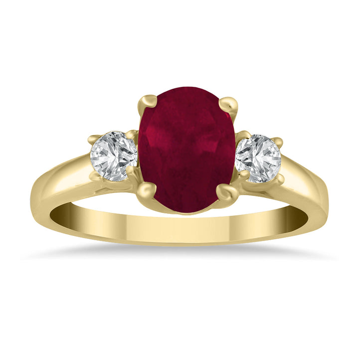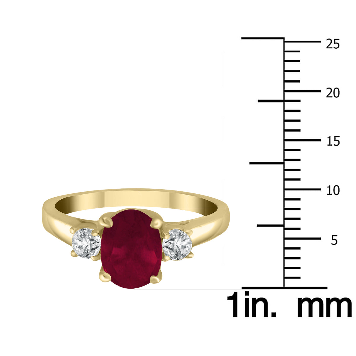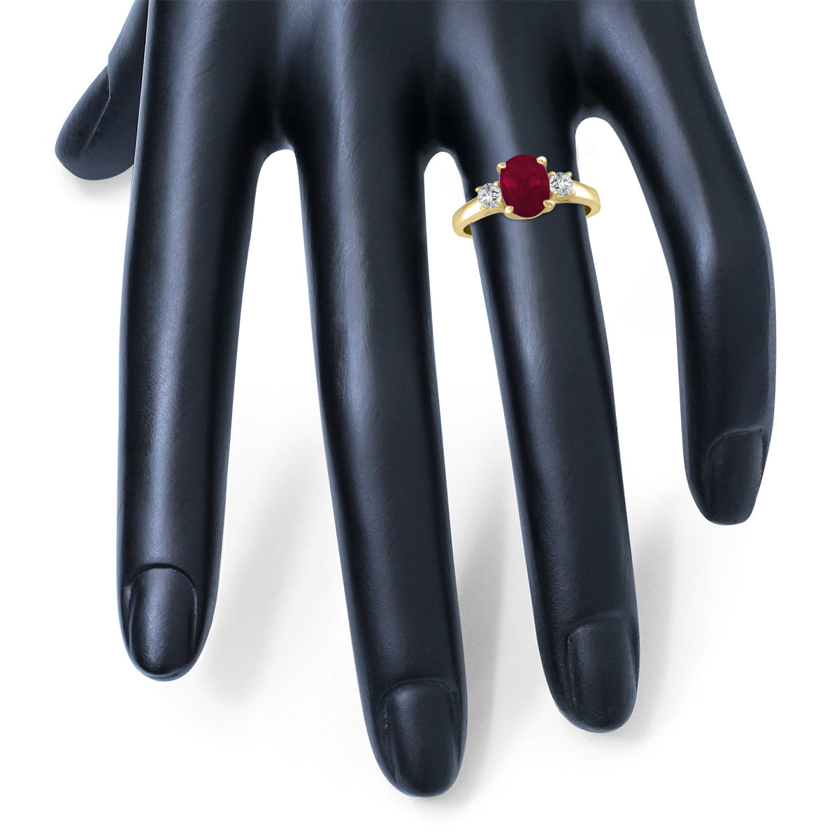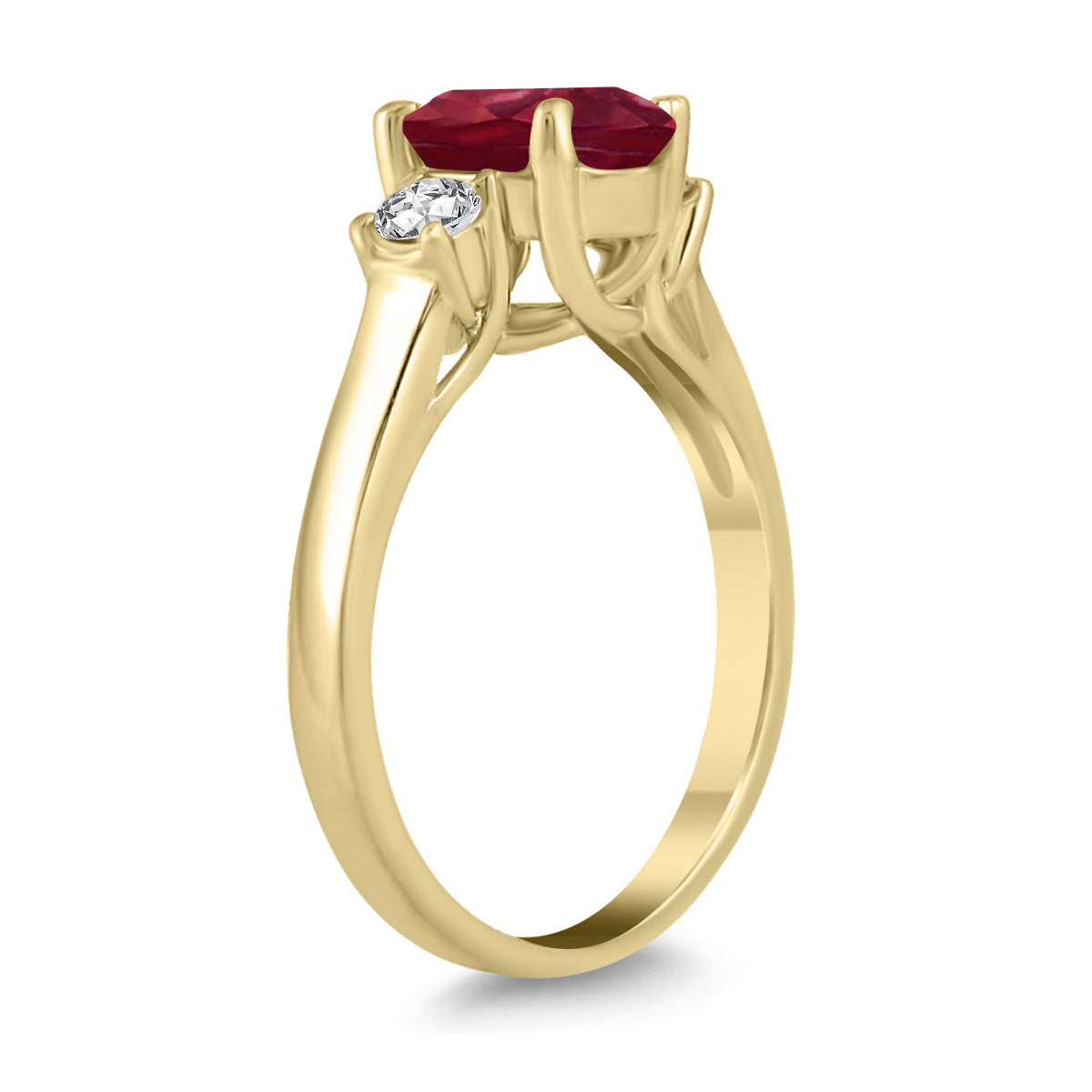 1.35 Carat Ruby And Diamond Three Stone Ring In 14K Yellow Gold